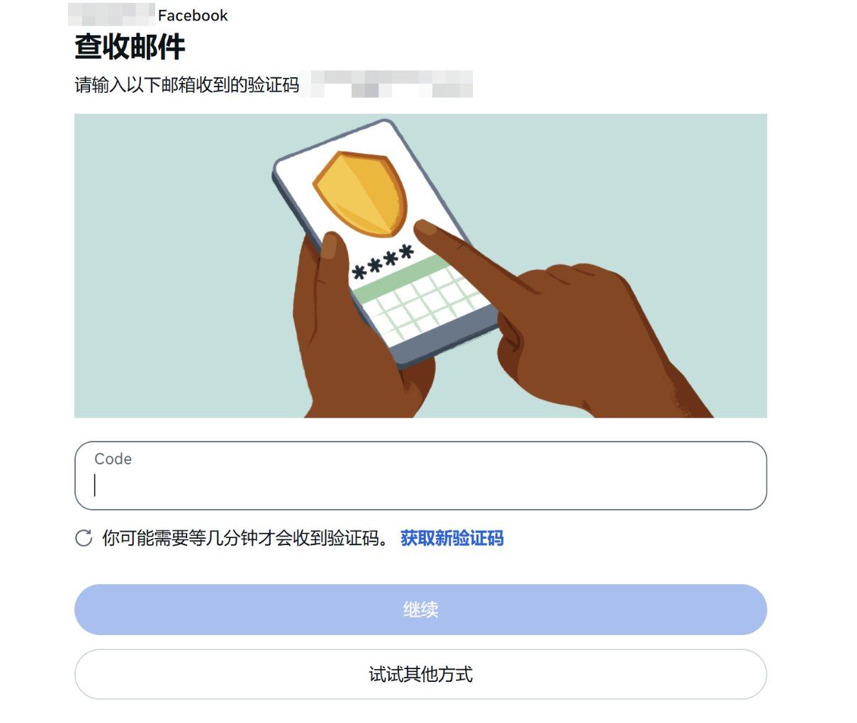 step3:Facebook平台登录,可能会需要安全验证,按流程验证即可