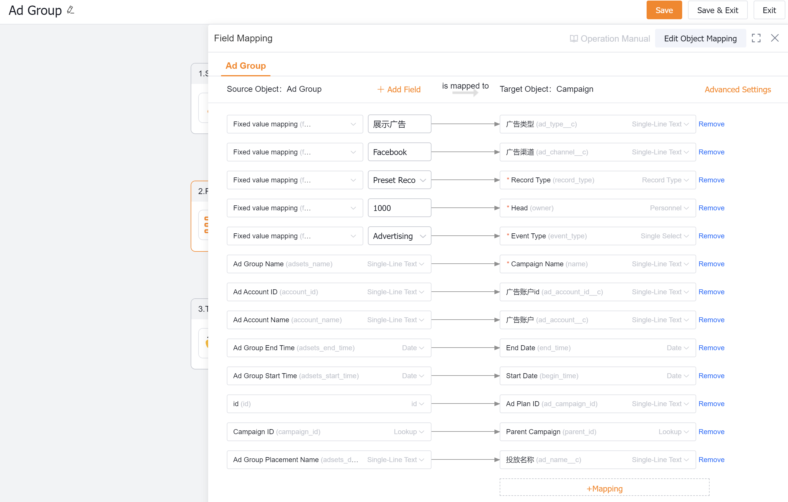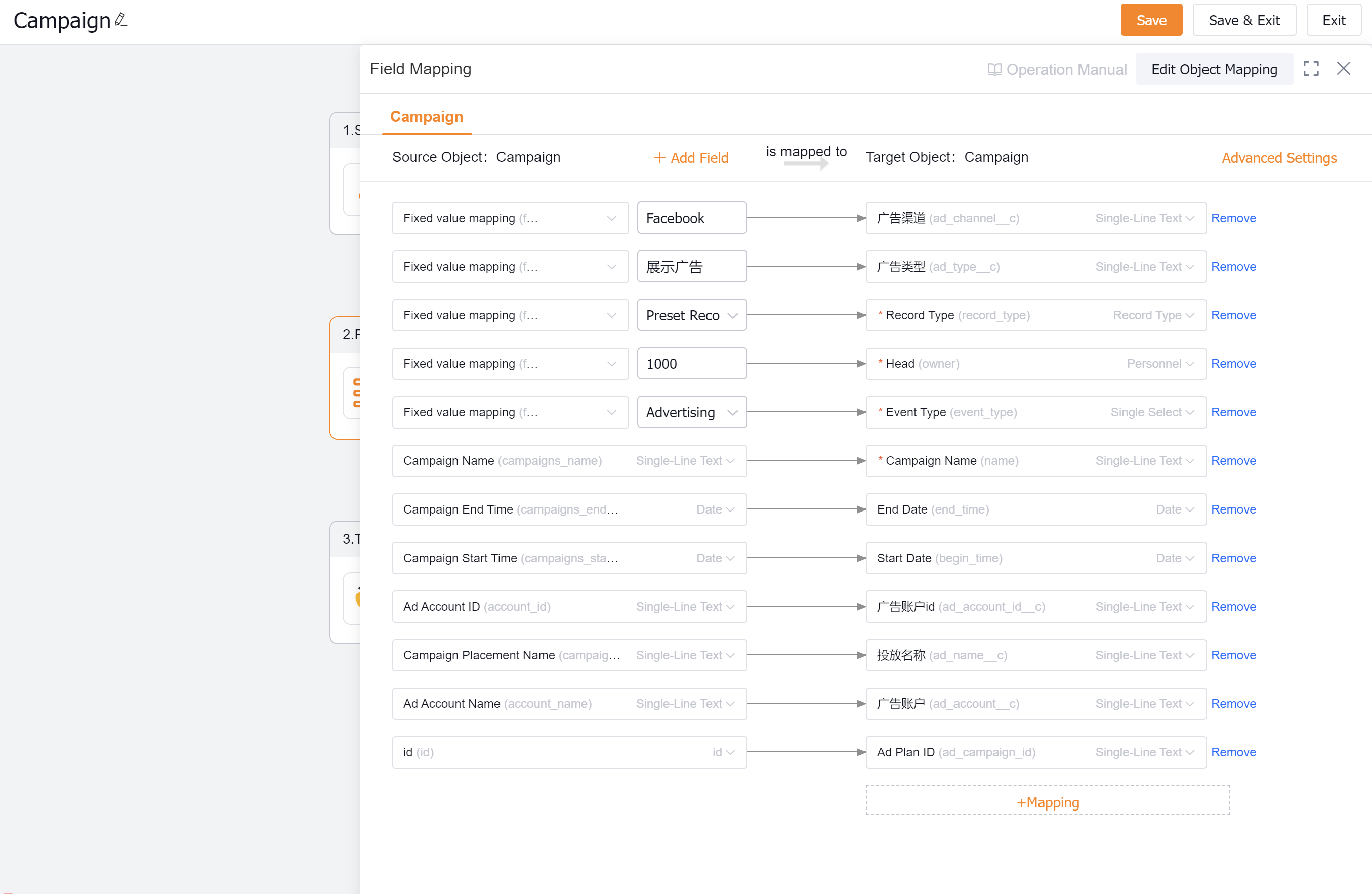 配置完成字段后,点击 Save & Exit 退出,并启用集成流做数据同步: