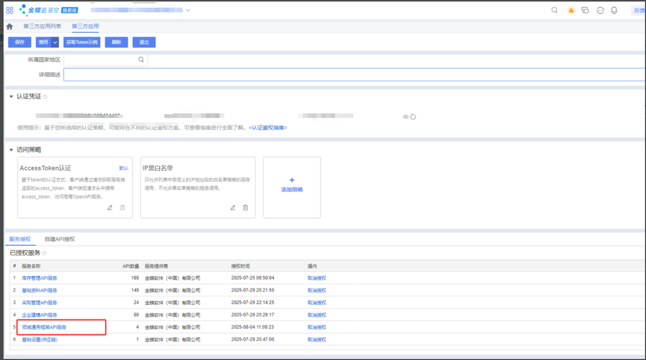 答:进入云星空旗舰版,第三应用,找到对接的应用,把需要的API授权打开即可。如图: