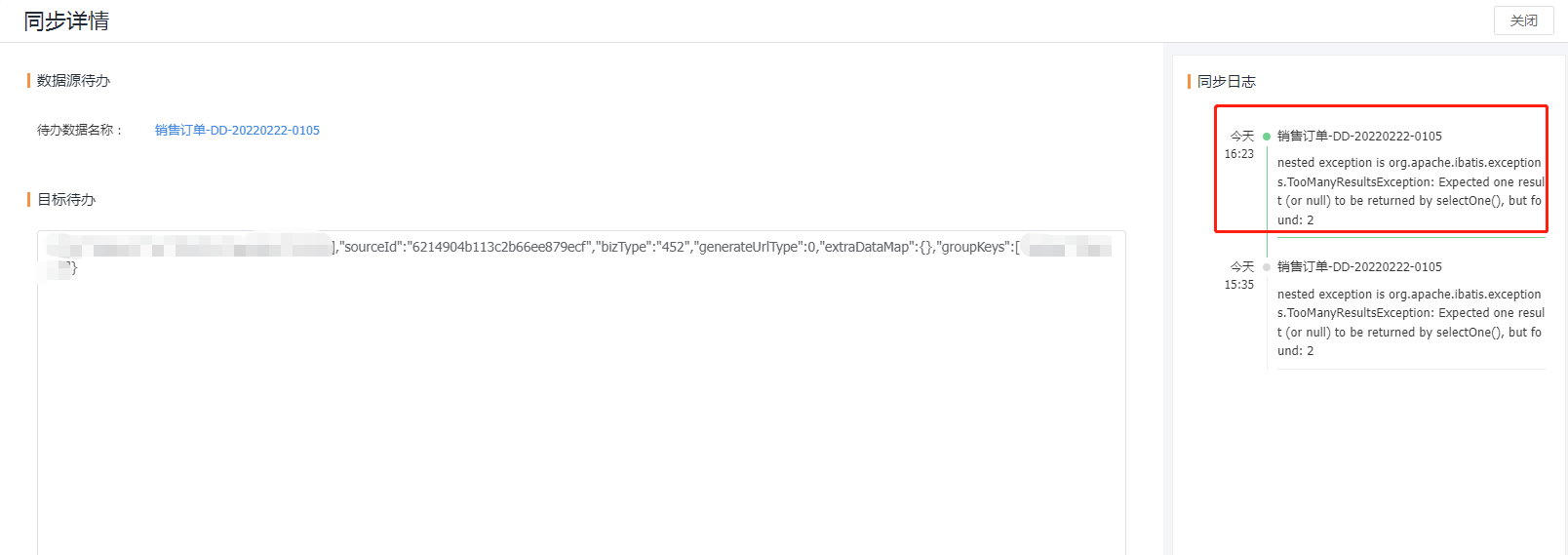 待办同步OA报错:nested exception is org.apache.ibatis.exceptions.TooManyResultsException: Expected one result (or null) to be returned by selectOne(), but found: 2