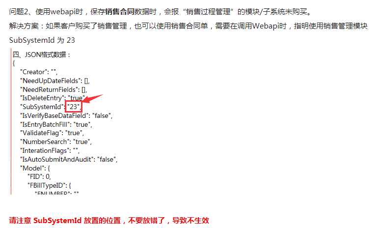 解决方案:根据参数说明里面的2.5参数 SubSystemId 主动给已购买的子系统即可。如:SubSystemId:“23”