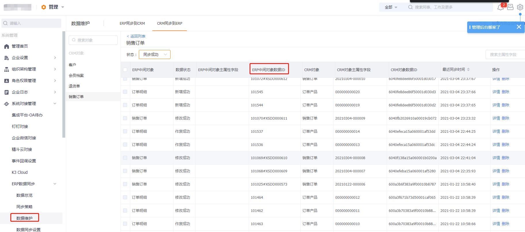 导入映射时,不同的对象,ERP数据id填写方式有可能不一致,根据 数据维护中【ERP中间对象数据ID】字段的格式填写,可通过新增数据同步后查看【ERP中间对象数据ID】的格式。K3C插件对接,客户、物料导入时ERP数据id填写ERP编码,销售订单导入时主对象填写【内码id#单据编号】,明细填写内码id。
