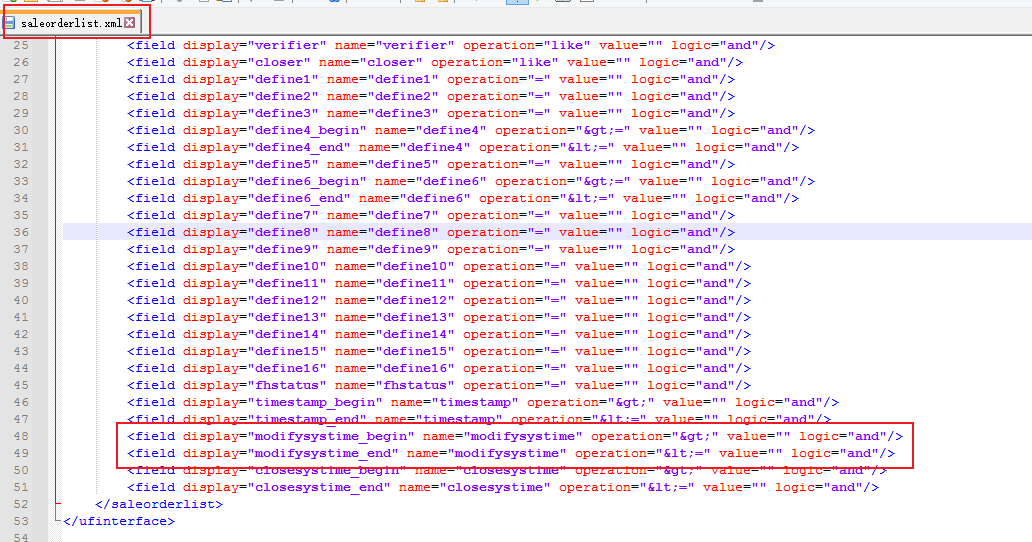 step2:为单据的查询条件添加修改时间,在U8平台安装目录下的config\META-INF\templates\query目录中找到单据的列表查询,在条件限制中添加修改时间