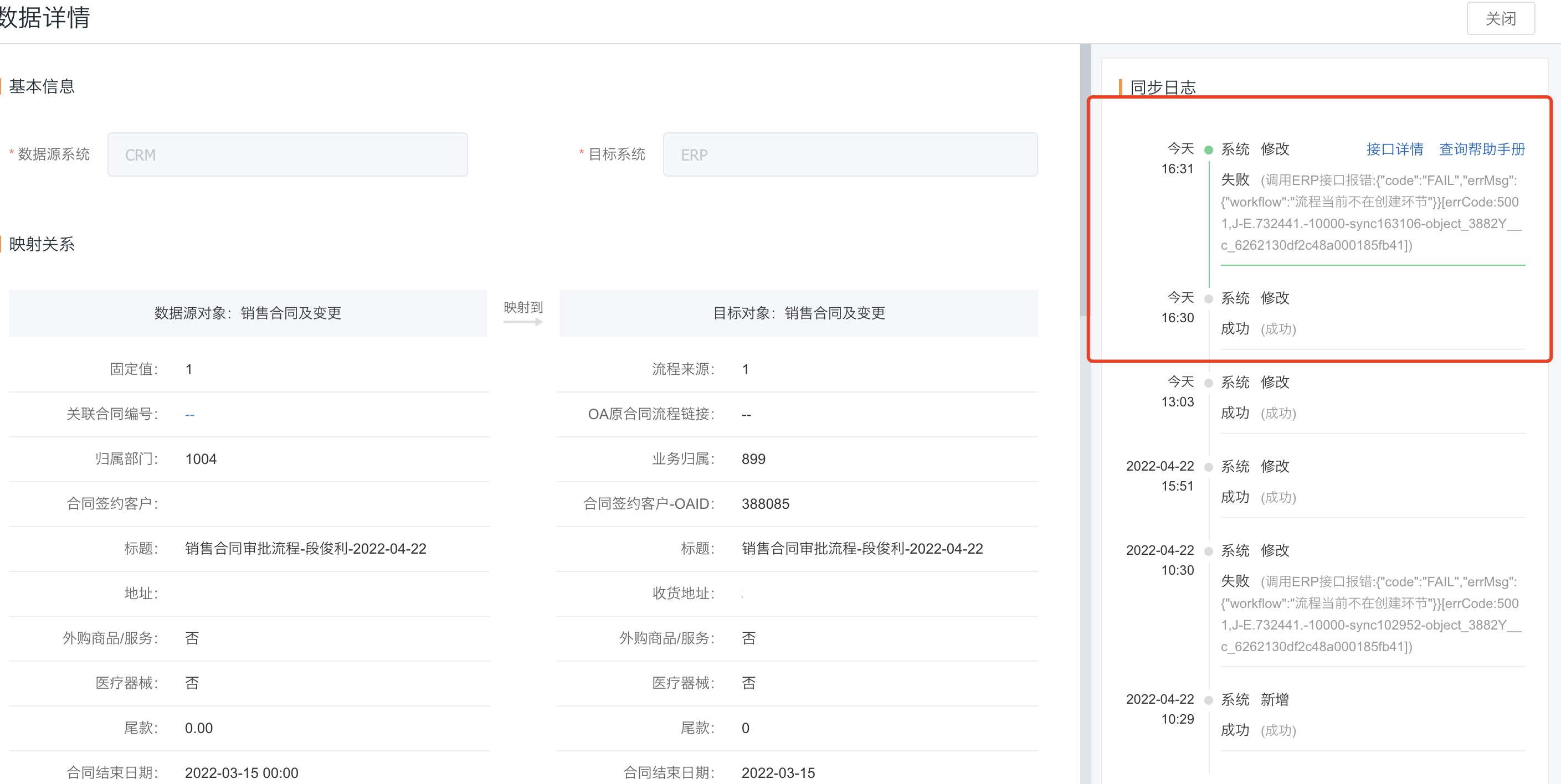 调用ERP接口报错:流程当前不在创建环节