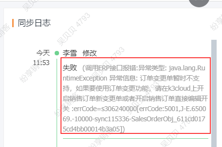 crm->erp方向,订单变更单暂时不支持,如果要使用订单变更功能,请在k3cloud上开启销售订单新变更单或者开启销售订单直接编辑开关?