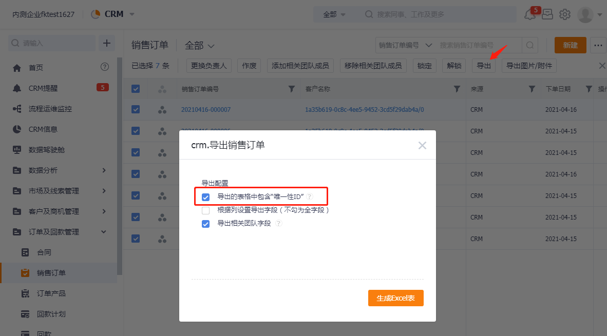 有从属关系的映射,订单该如何导入?(销售订单id和明细单据的id获取困难)有从属关系,在主对象和从对象模板里面分别进行数据映射然后导入。CRM数据id可通过在CRM导出数据获取,注意要勾选【导出的表格中包含“唯一性ID”】;K3C业务单据数据id可通过导出获得。具体导入操作参考用户手册【3.3.4.2 业务单据数据导入】,用户手册地址:https://www.fxiaoke.com/mob/guide/erpdss/%E9%9B%86%E6%88%90%E5%B9%B3%E5%8F%B0%E4%BD%BF%E7%94%A8%E6%89%8B%E5%86%8C.html主对象和从对象模板里面分别进行数据映射
