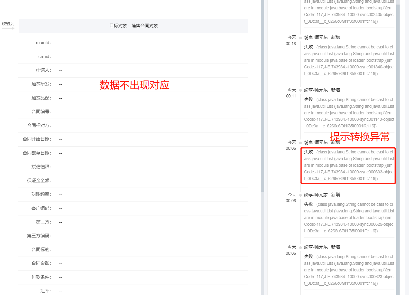 异构系统的字段名称apiname不能是PaaS平台的特殊变量名称。