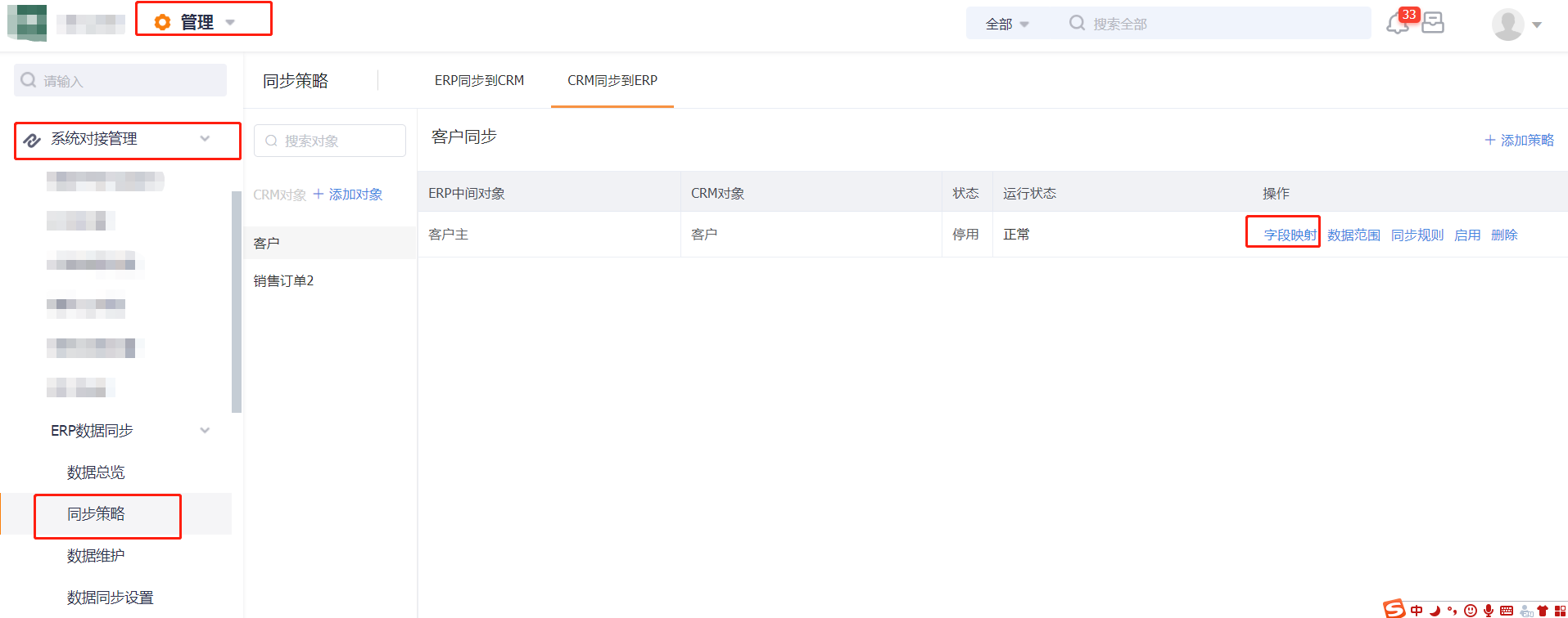 (1)CRM往ERP,修改的字段没有做字段映射,即使修改了也不会触发修改同步。请检查 管理->ERP数据同步->同步策略->字段映射