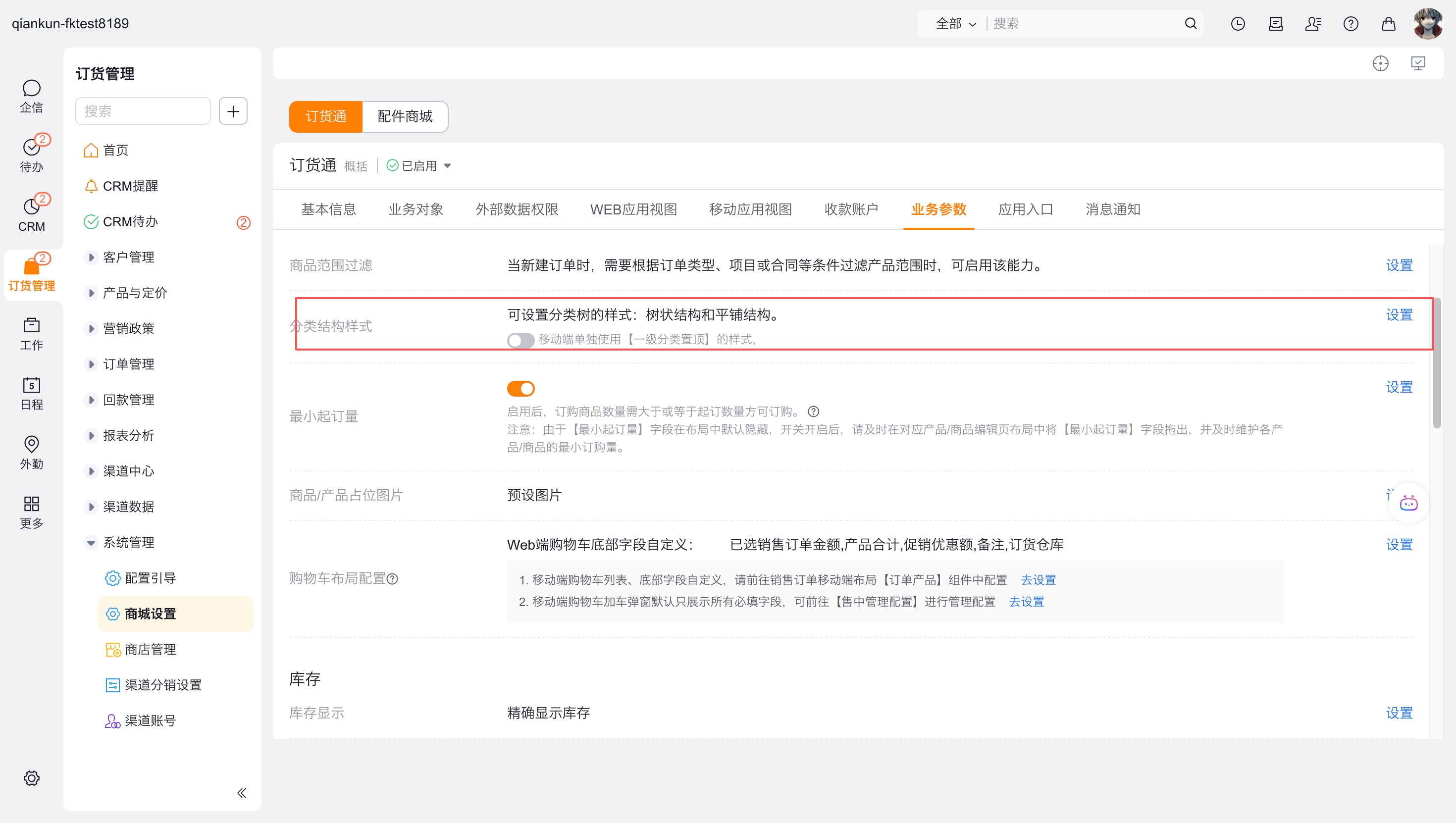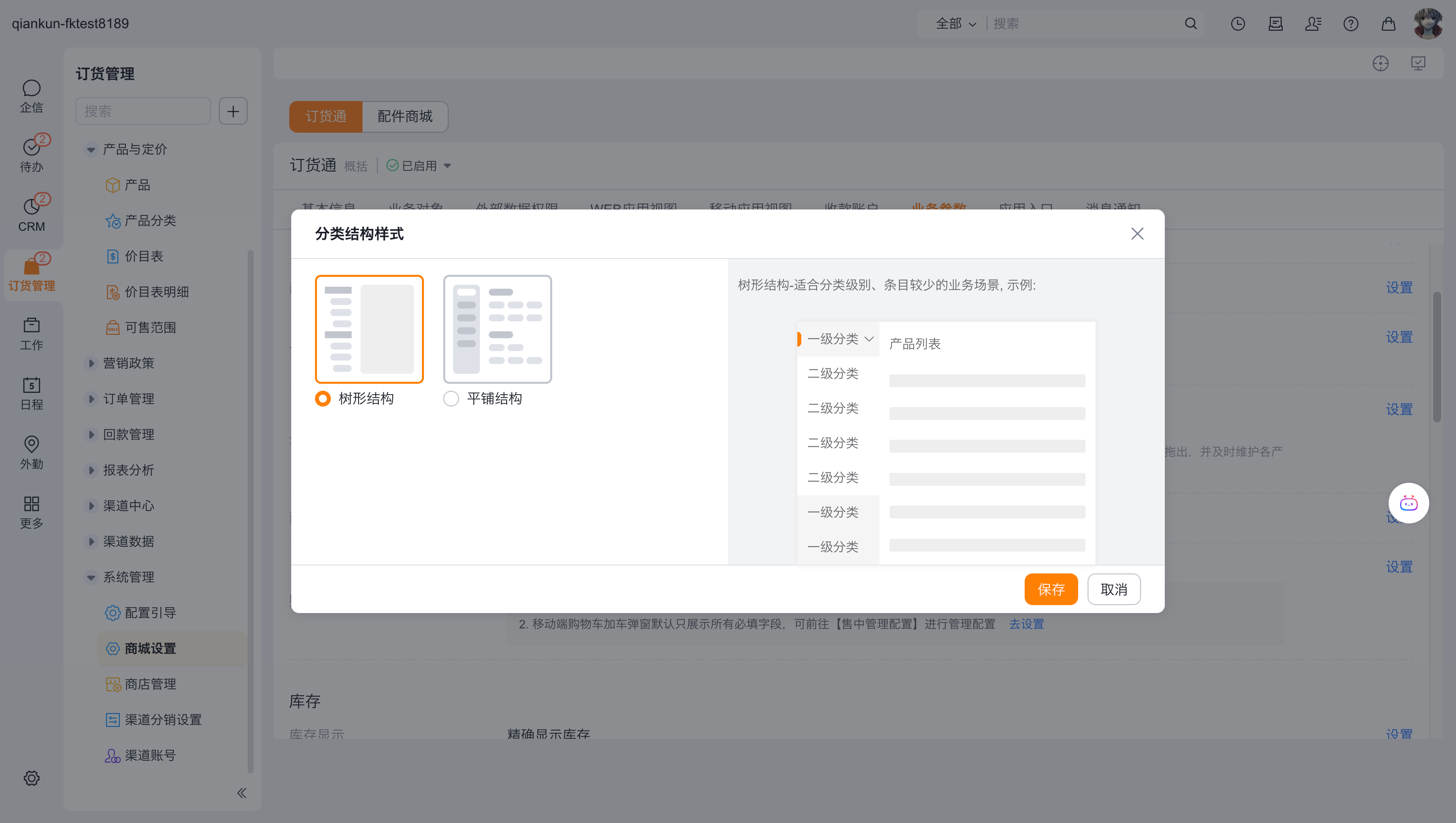 管理员可基于公司的产品/商品分类层级设置不同的分类树的显示方式。该配置支持Web、移动端。