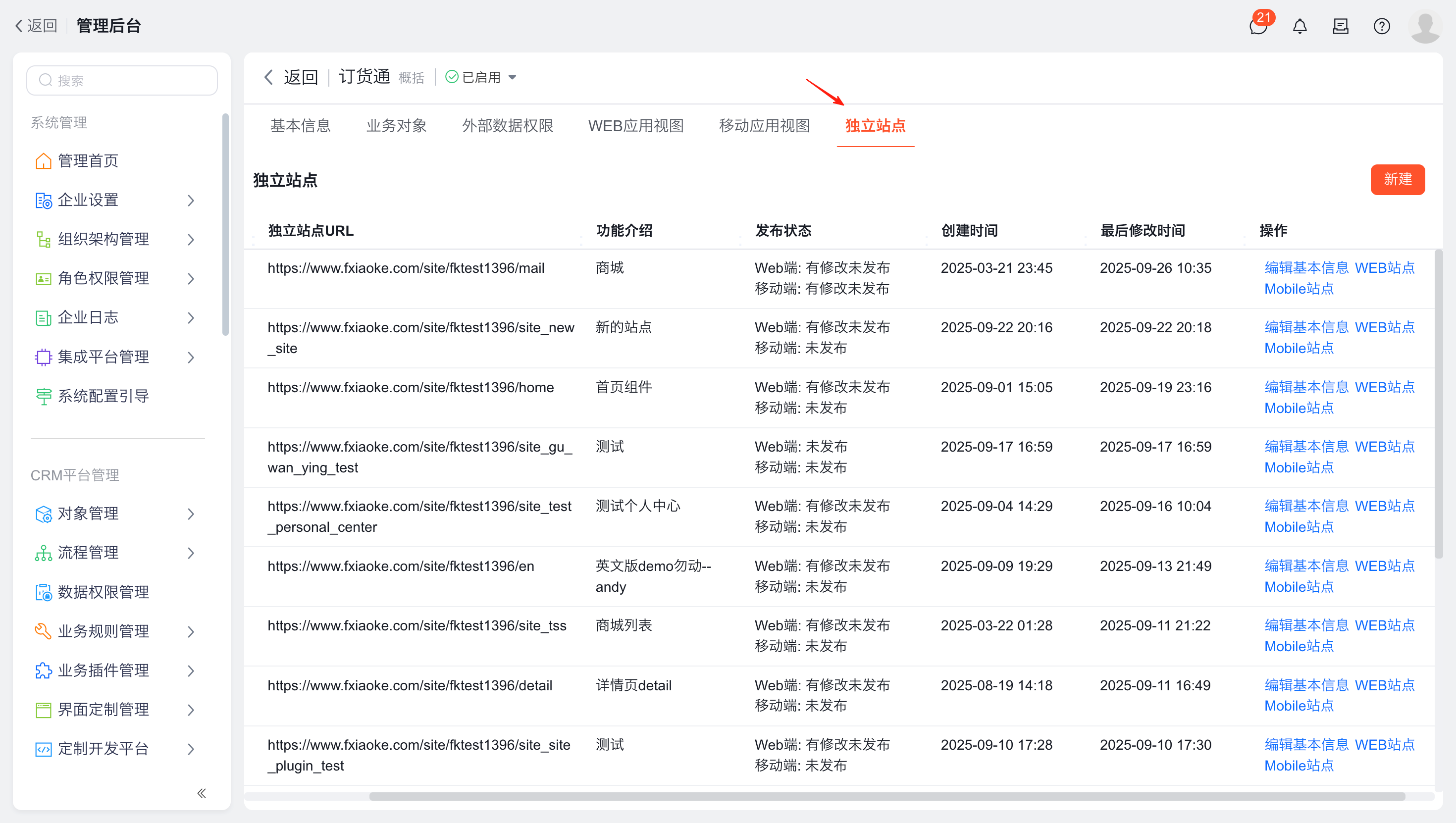 提供新的站点门户url给客户,或绑定在企业门户中,让用户体验新的站点效果。
