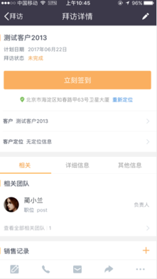 记录业务进行的地点、时间、时长。