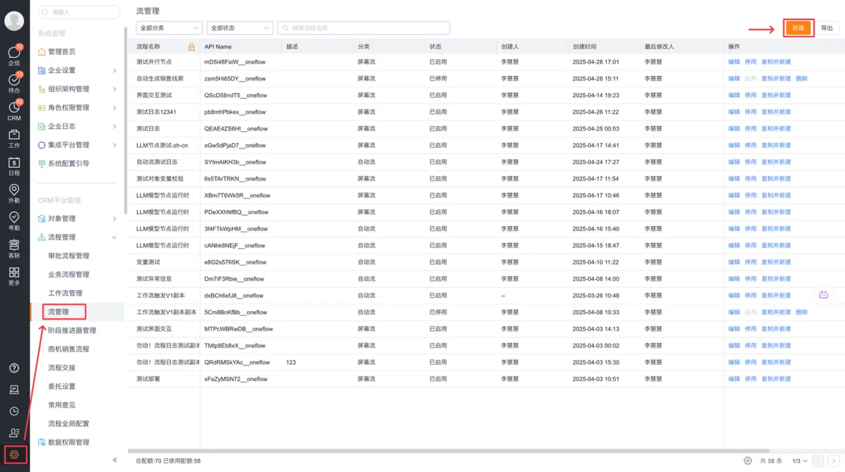 打开管理后台->流程管理->流管理,点击新建。