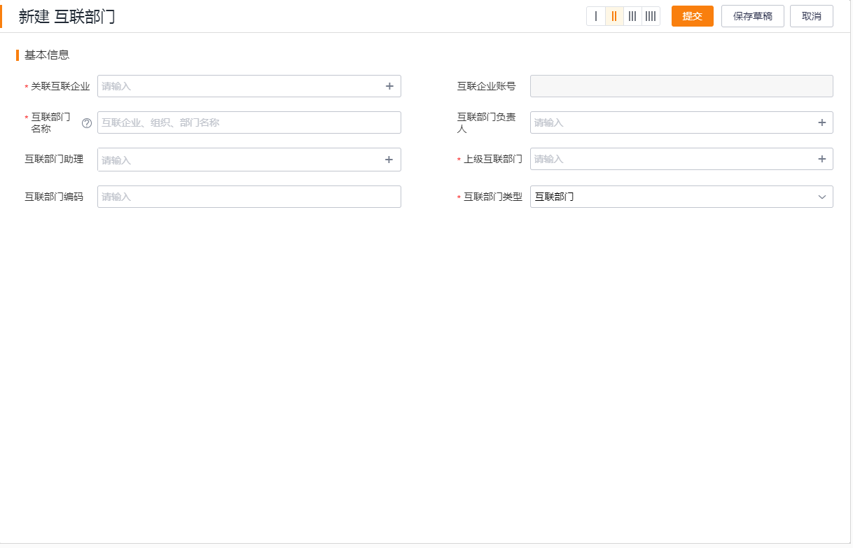 1.点击新建互联部门,显示如下: