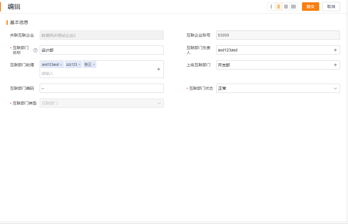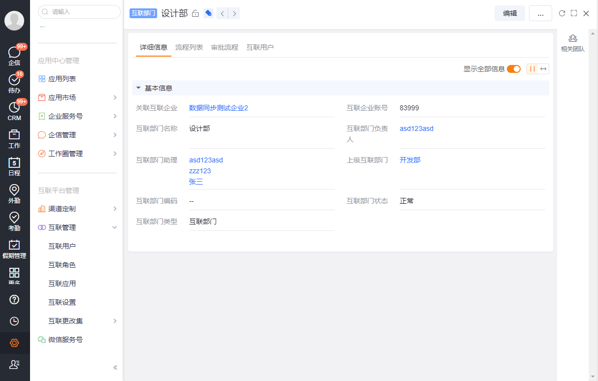 3.支持编辑互联部门详情