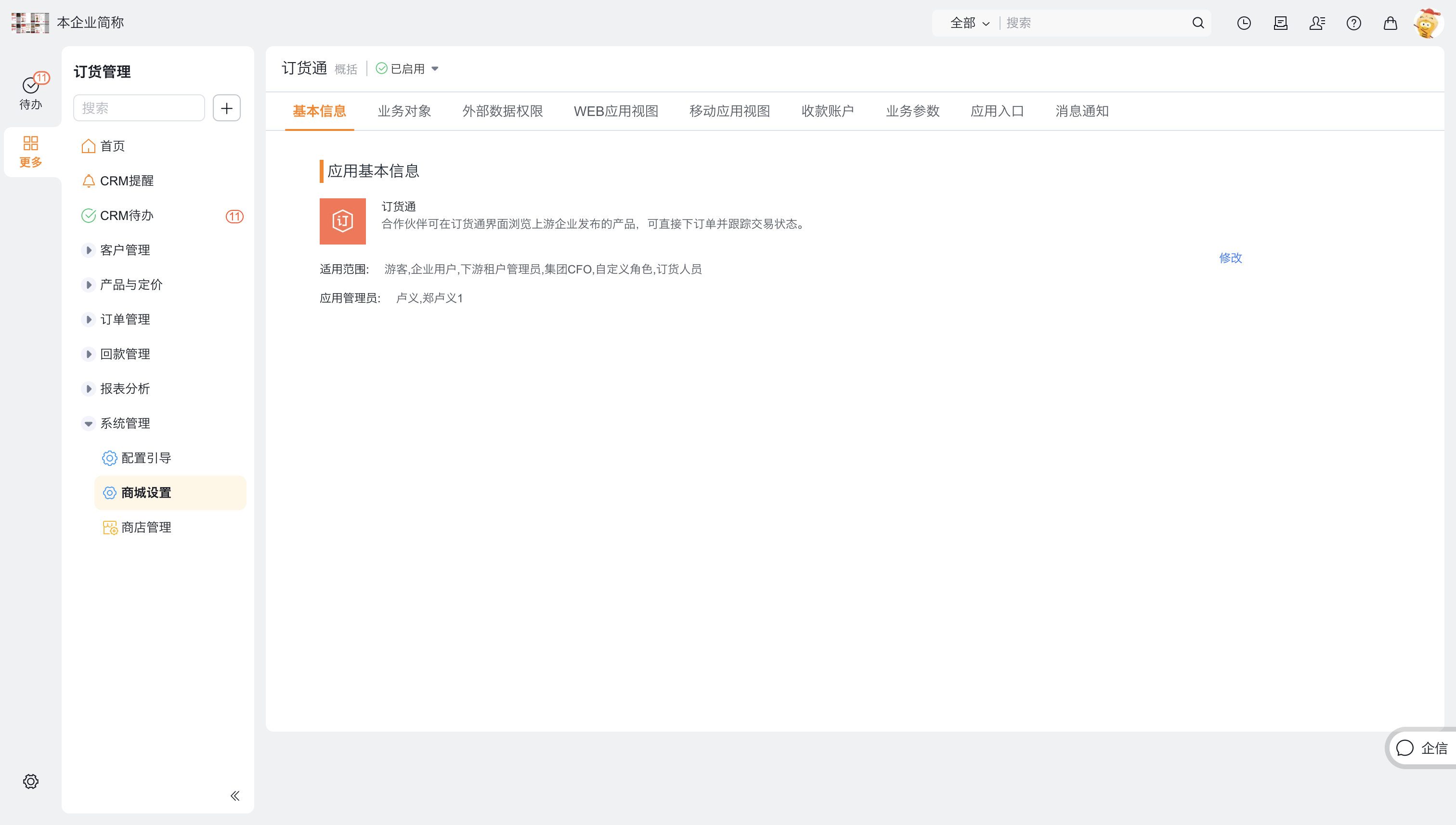 - 完成了订货通应用的开箱初始化(进入订货管理,完成配置引导)。参考文档:5步快速搭建订货商城