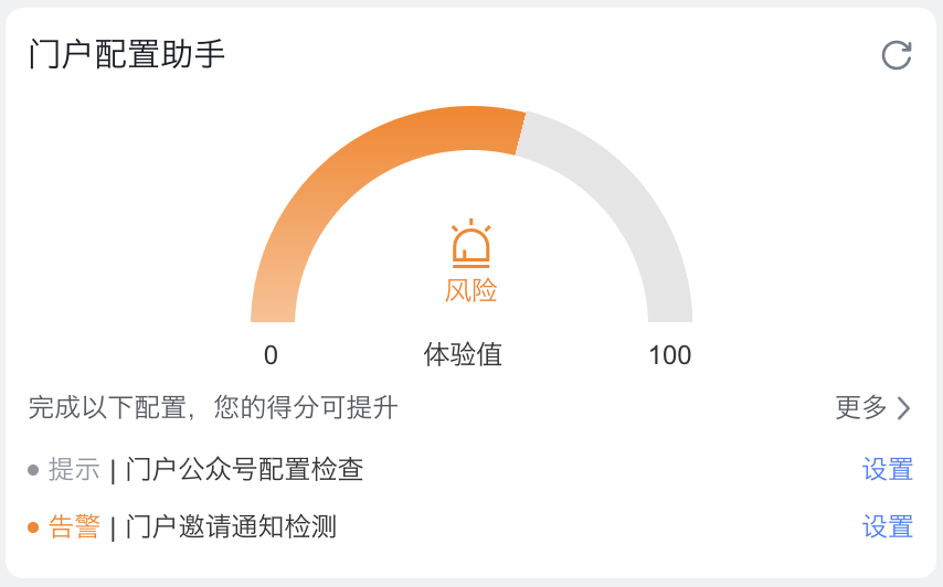 2.部分情况下,也可能会出现告警级的配置异常:此时表示门户有重要的配置项可以继续优化。