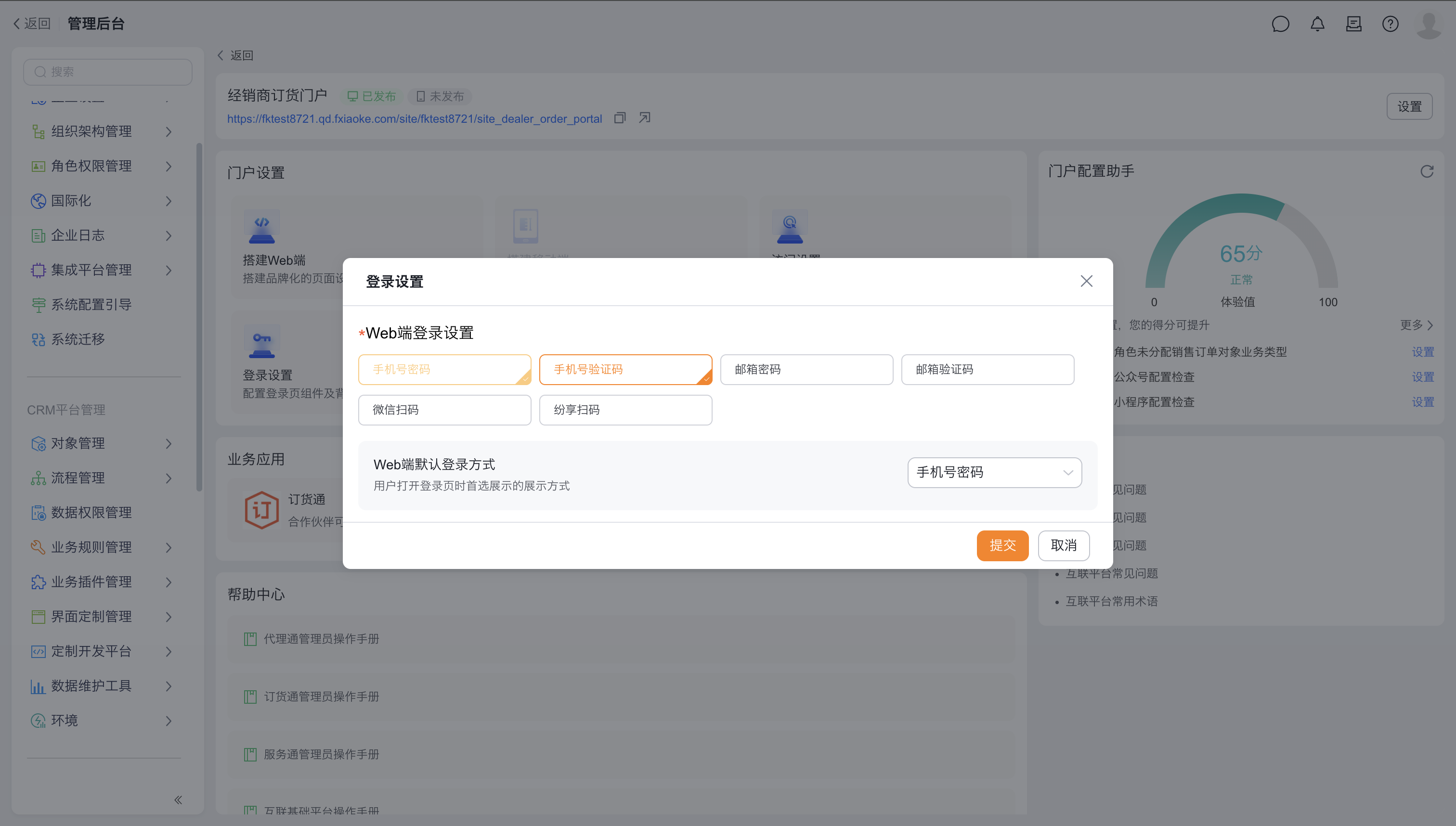 - 在弹窗设置中支持web端登录方式设置,整体包含两大类登录方式。