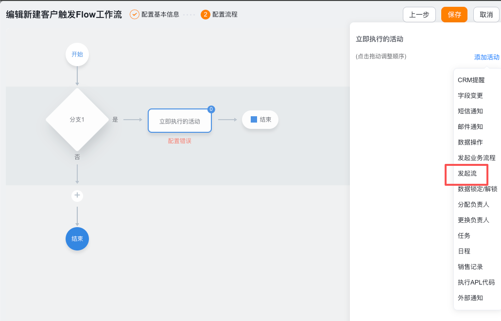 举例:新建客户数据,通过“工作流”触发“流”。在流编排中查询企业的法院公告信息判断企业的司法风险,将查询到对应企业的司法风险信息可创建数据保存到自定义对象中,并关联这个客户,同时将所获取到的信息让AI进行总结,丰富客户对象上的相关信息。