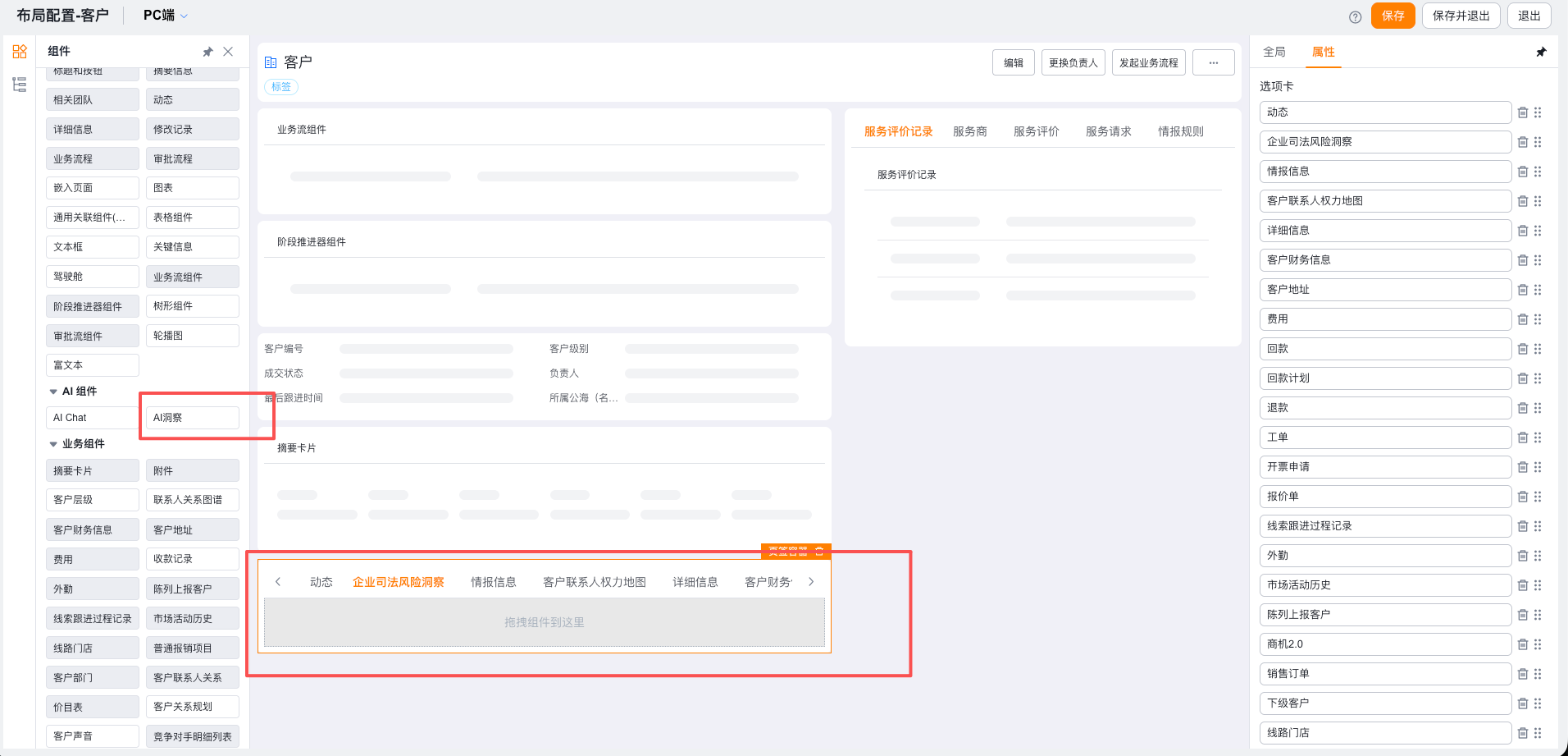 1️⃣对象布局中配置拖拽AI洞察组件