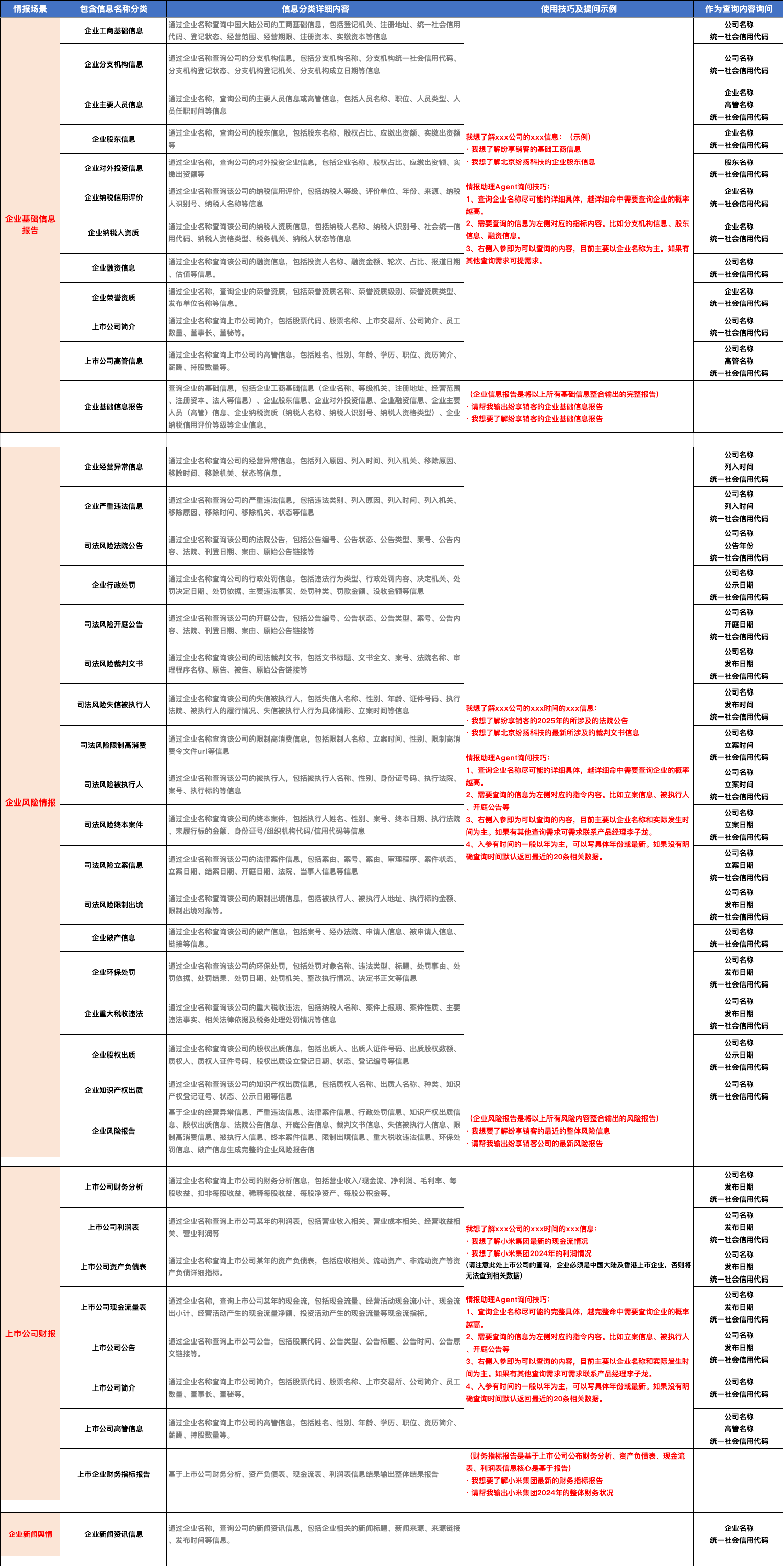 - 【情报助理】Agent中可以直接查情报,输入企业名称和想要查询的情报信息,获取情报内容。