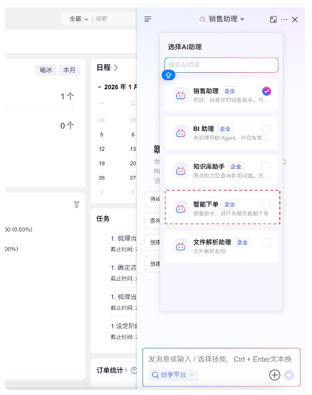 AI助手:选择【智能下单Agent】