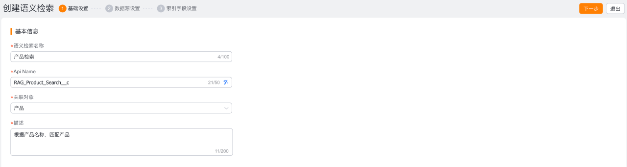 - API Name:RAG_Product_Search__c,不允许修改