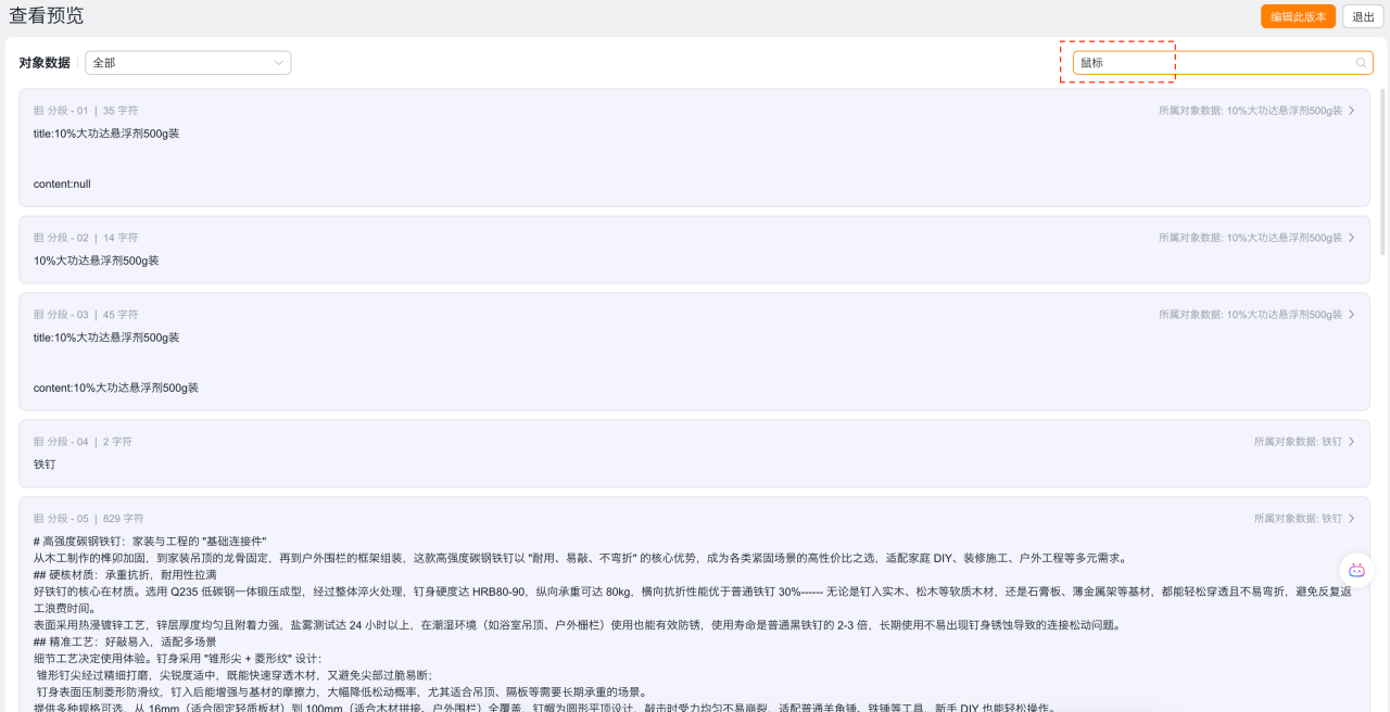 其它内容字段,可根据产品档案的实际物料情况,注意:内容字段最好高质量且内容完整的,质量较差的,不建议加入,会影响召回效果。