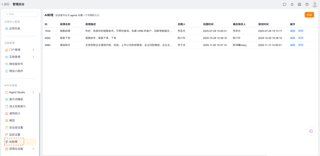 后台选择:【AI助理】功能
