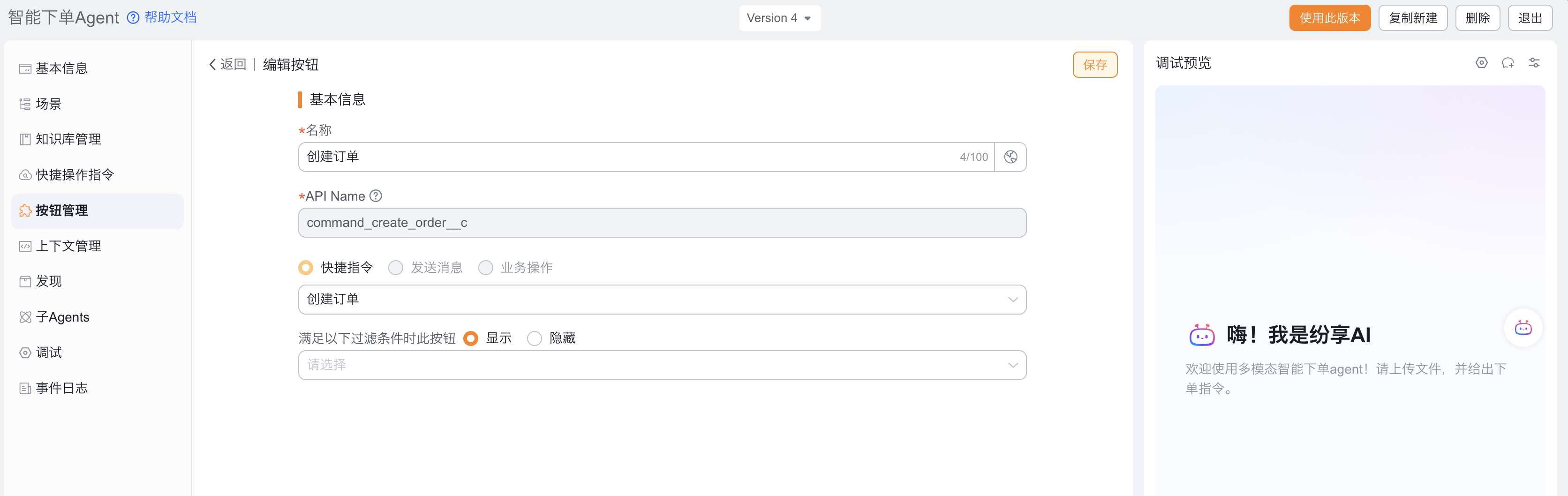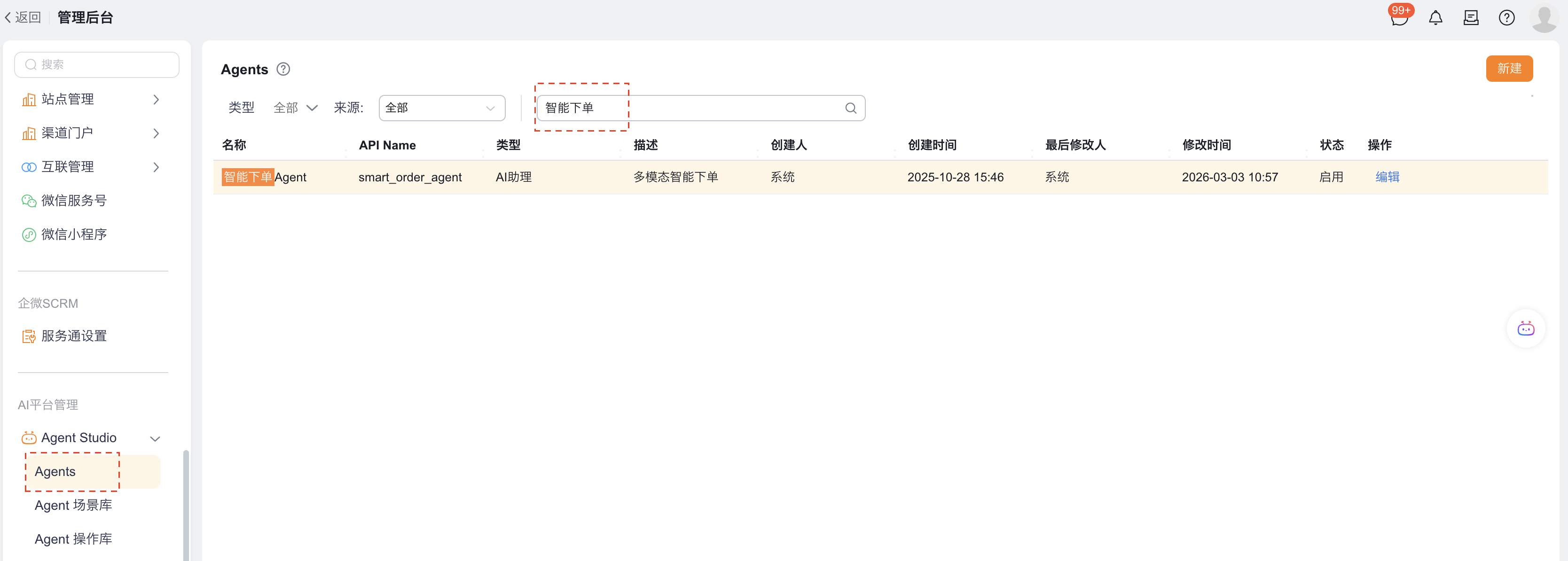 - 管理后台,选择智能下单Agent