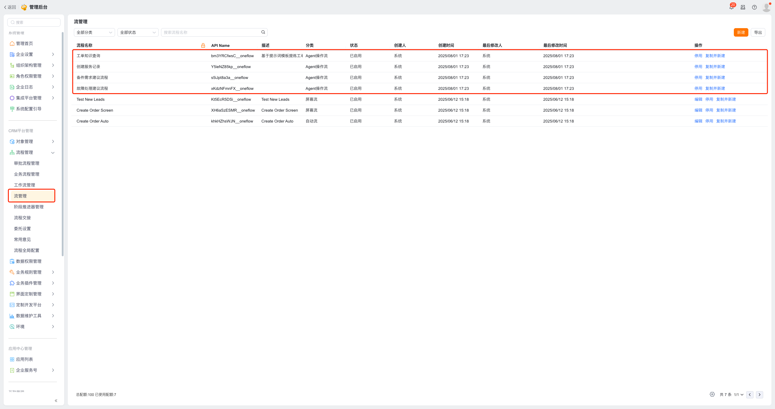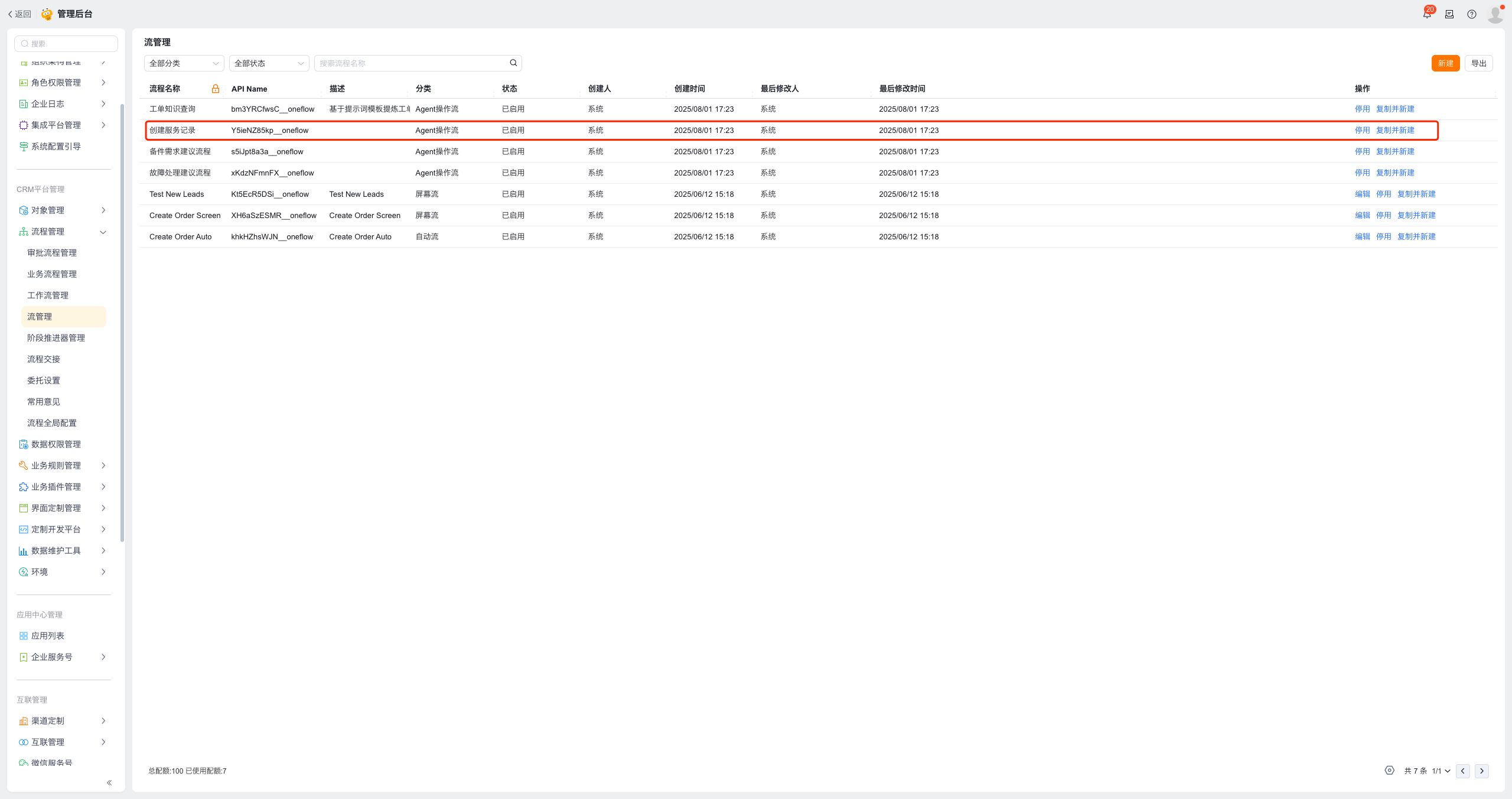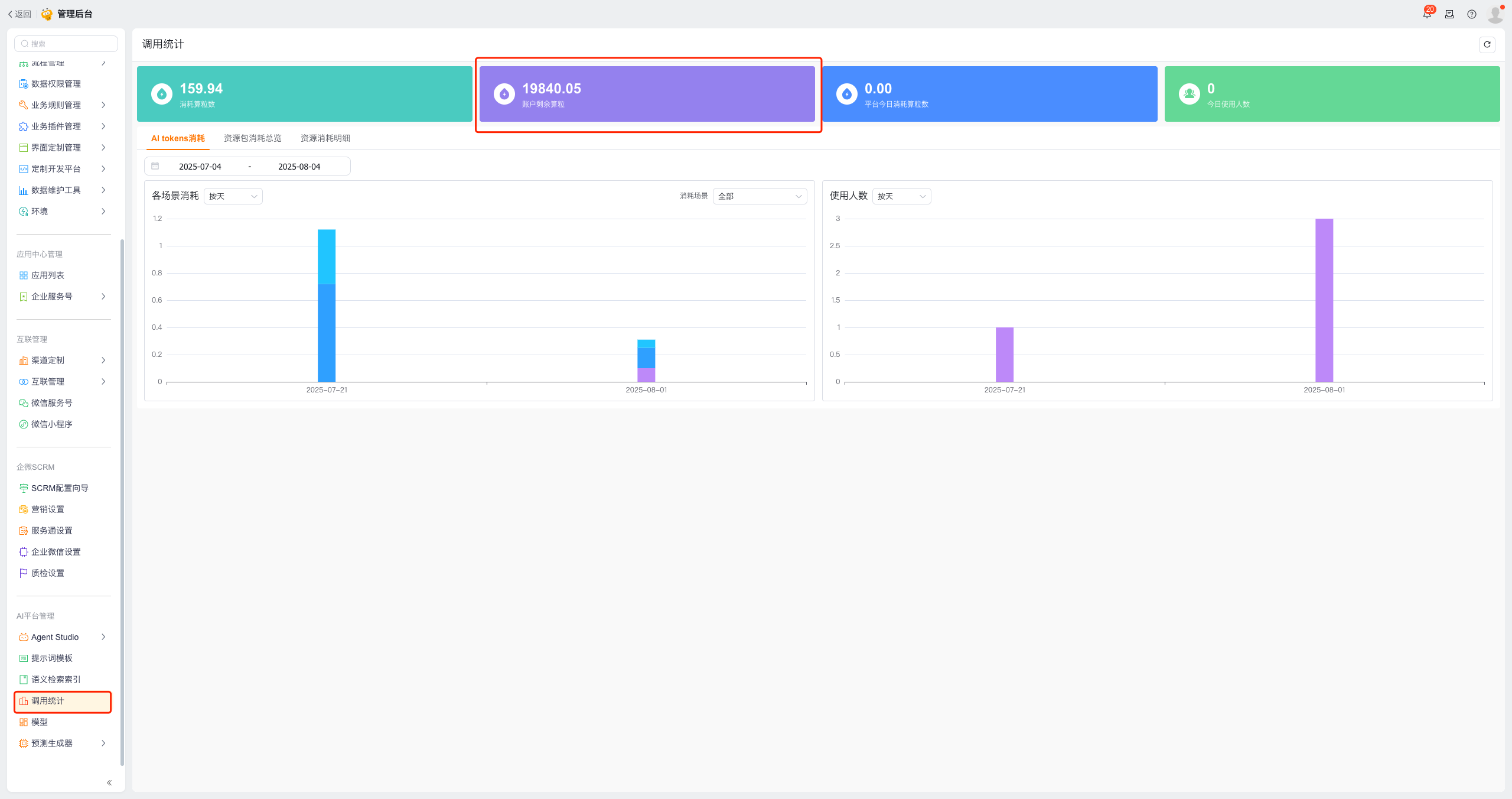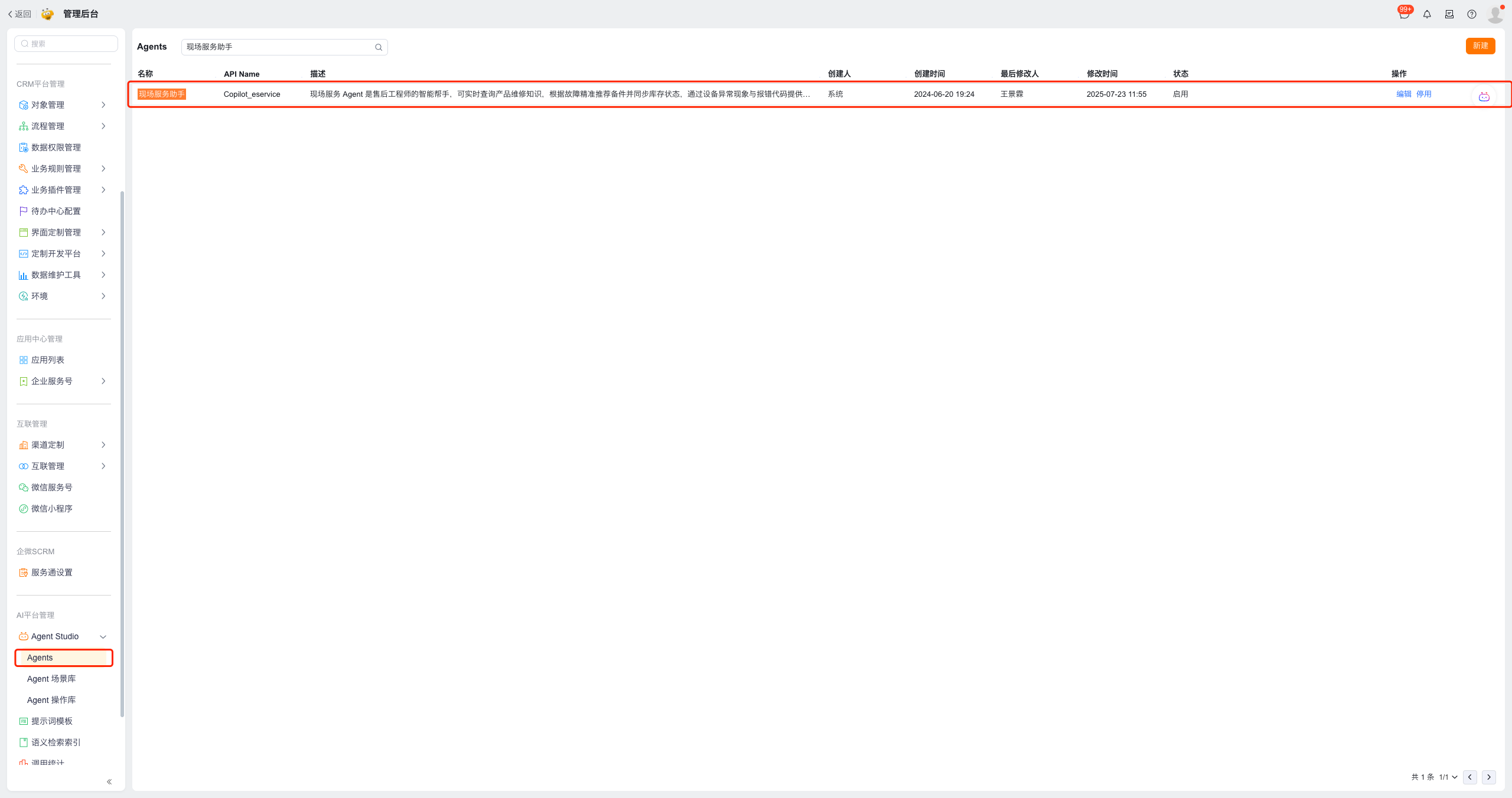 - Agent开发平台:下单后,将会在管理后台显示如下菜单