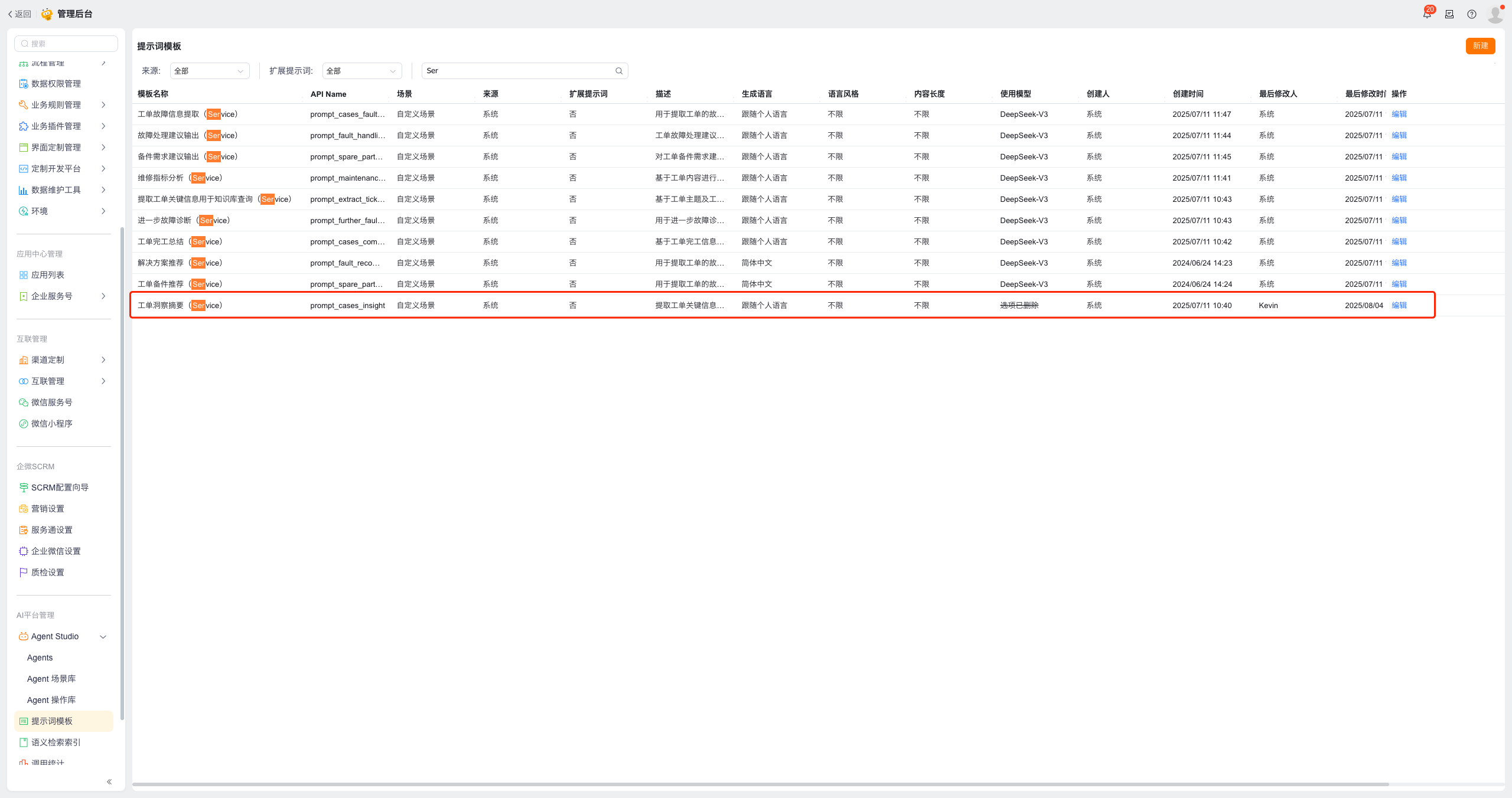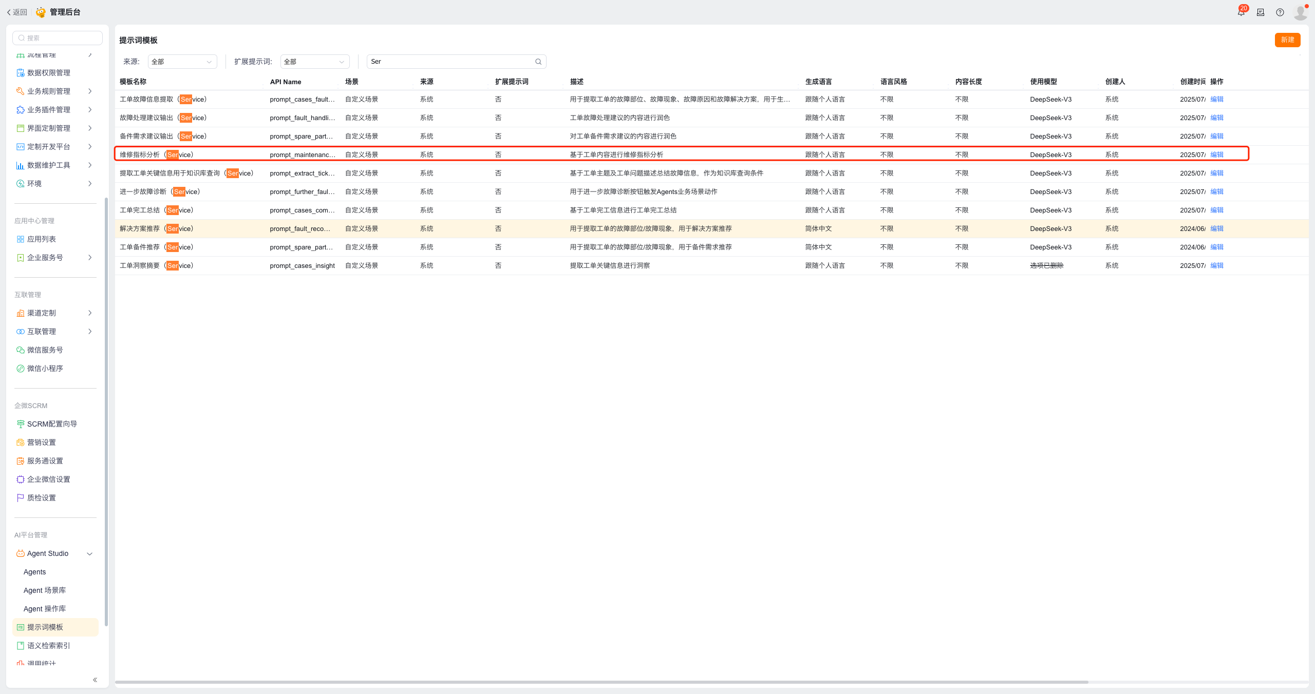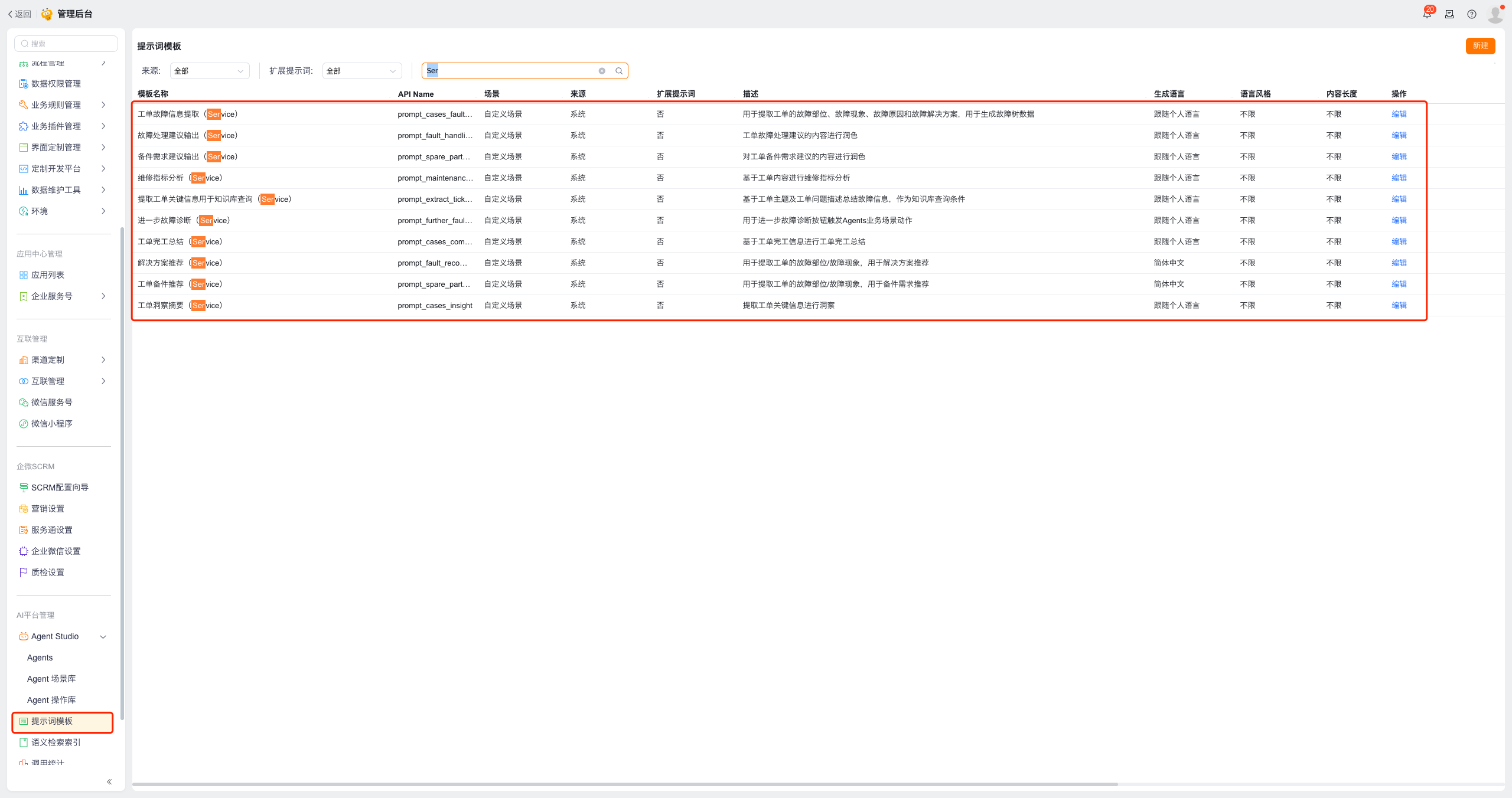 现场服务助手相关的提示词均以Service标识,可按需搜索