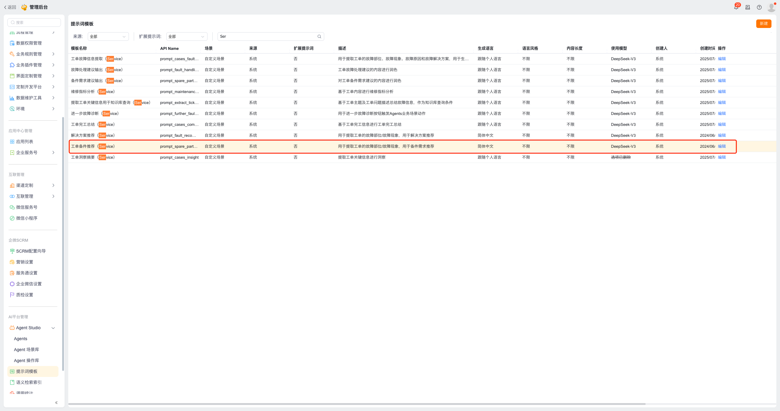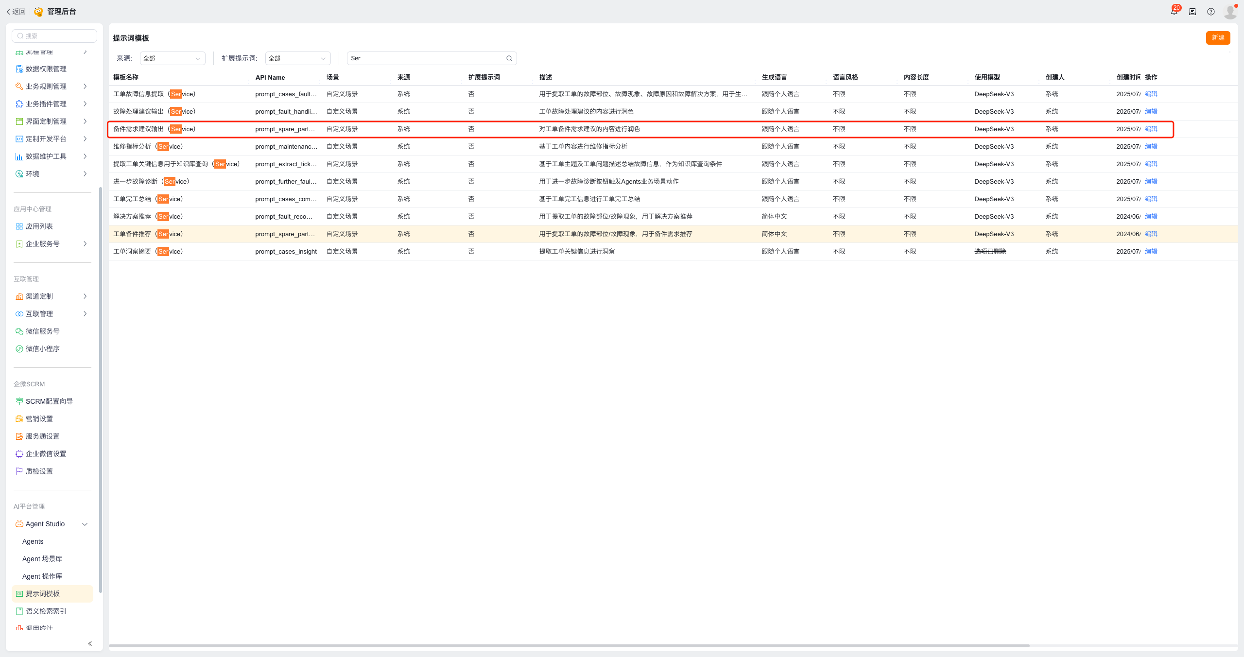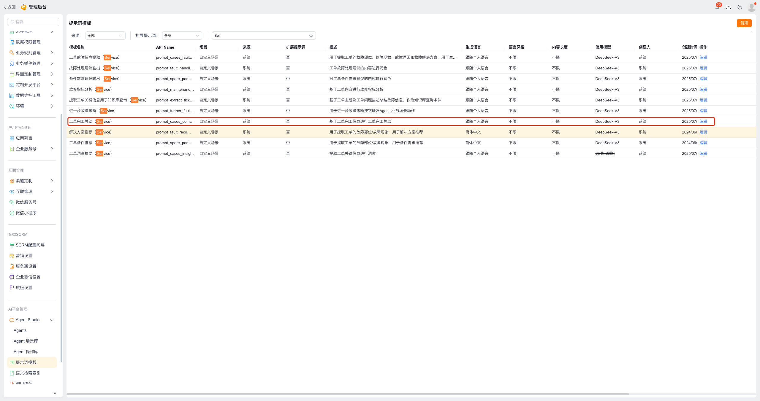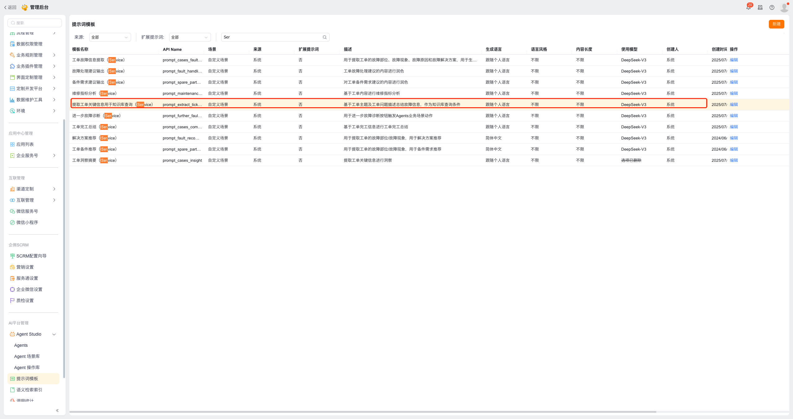 现场服务助手相关的提示词均以Service标识,可按需搜索