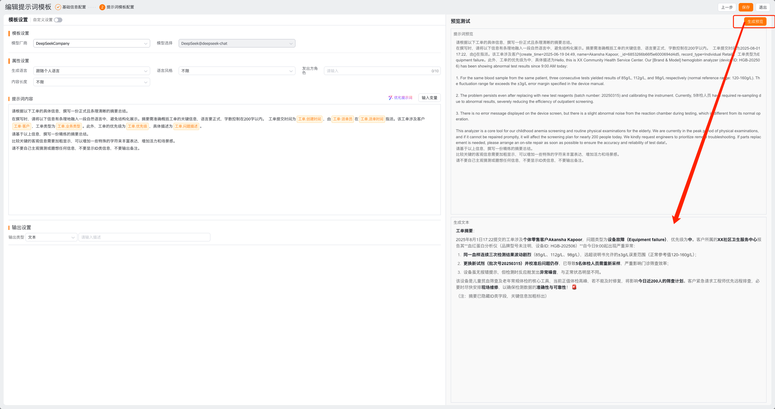 提示词中可对需要洞察的工单字段进行修改调整,自定义希望的输出内容及格式