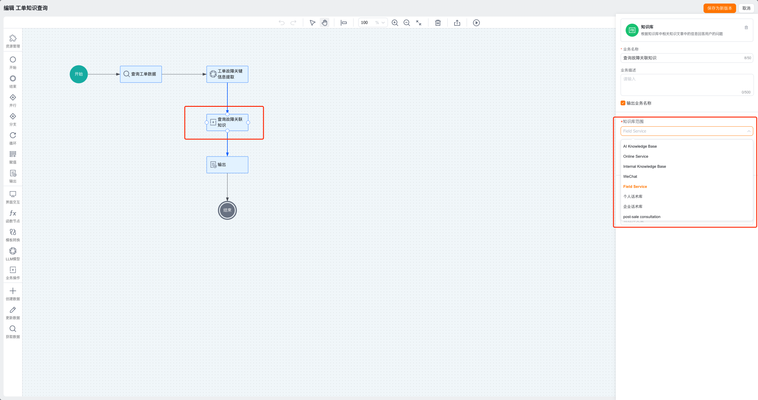 知识查询功能通过flow实现,在流管理中找到对应流程: