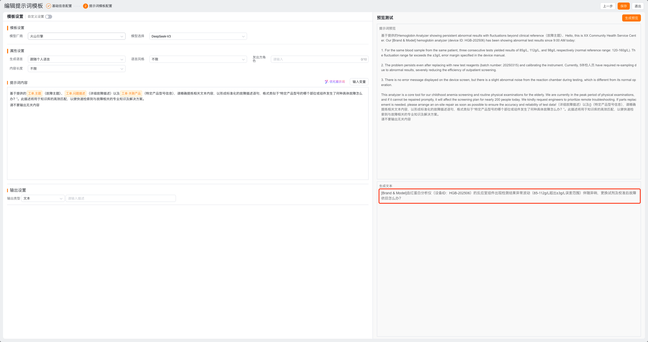 若对输出效果有自定义要求,可在提示词模板中进行调整