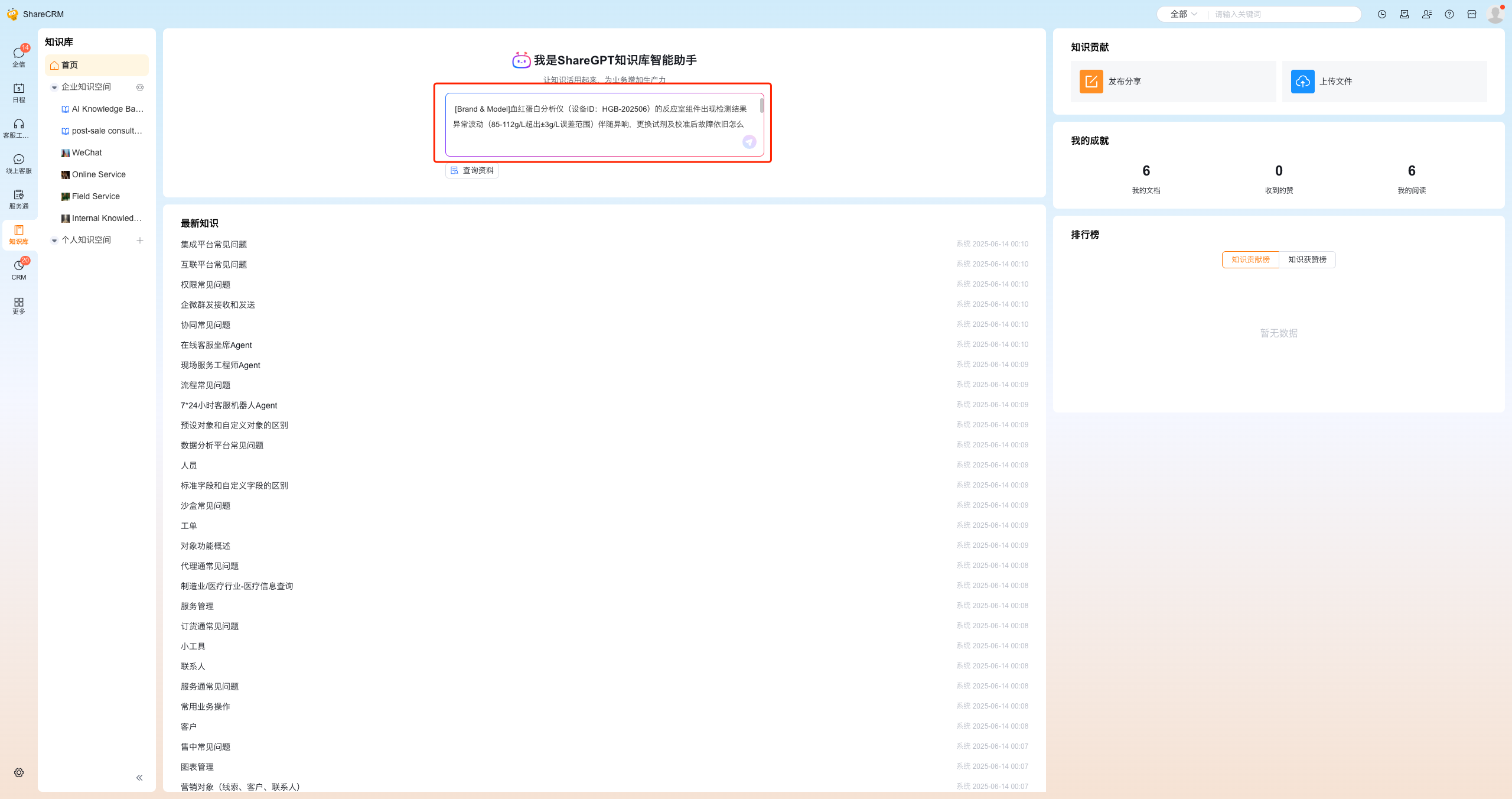 当工程师有疑问时,点击【知识查询】按钮,能基于工单信息智能检索关联技术文档、过往同类故障处理案例,助力工程师提前熟悉设备情况与潜在应对思路,为接单决策及服务准备提供依据