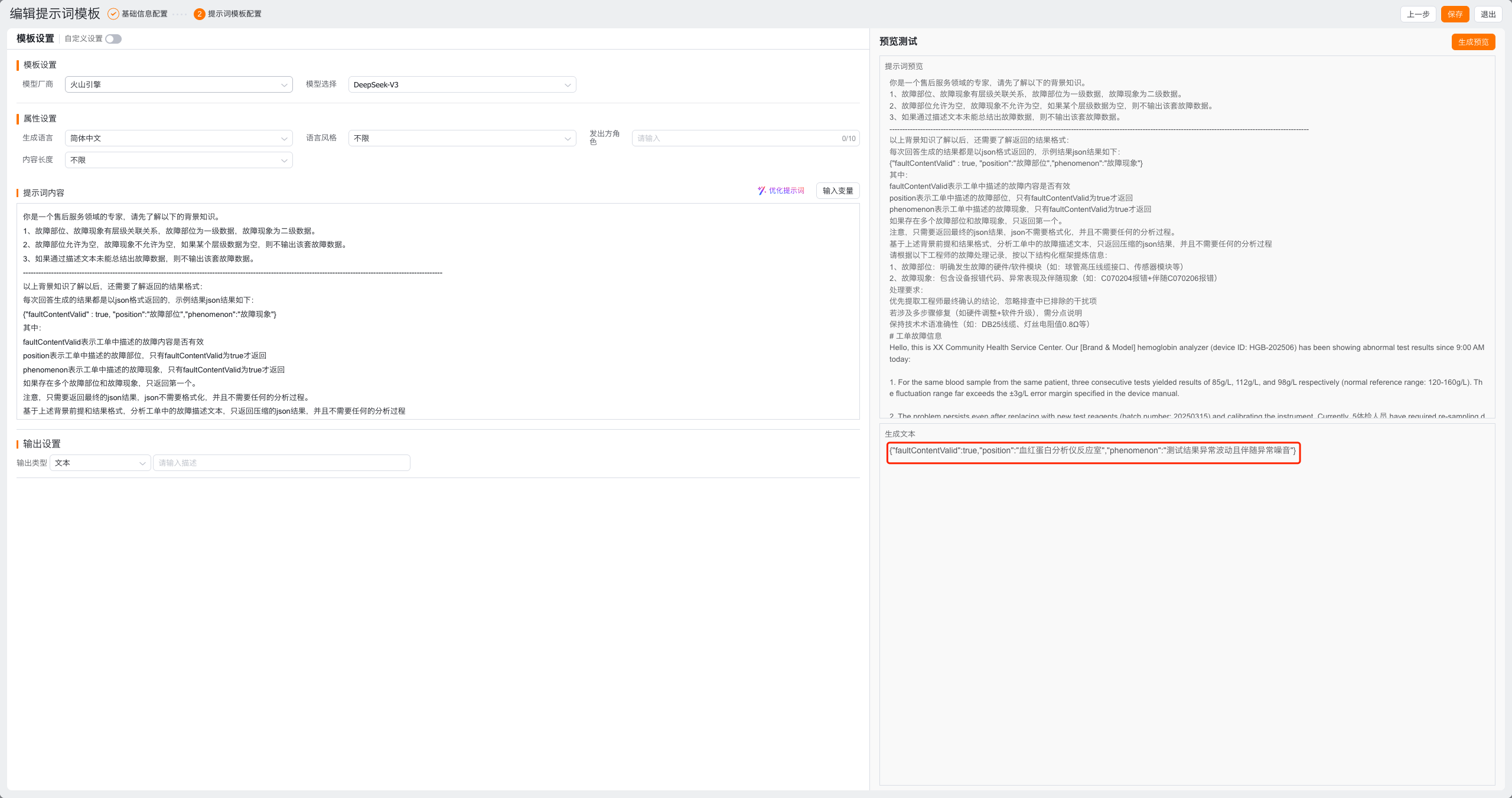 历史工单数据准备好后,即可创建新的工单,尤其要注意新工单的故障描述要与历史工单差不多,可通过预览提示词模板来进行检查
