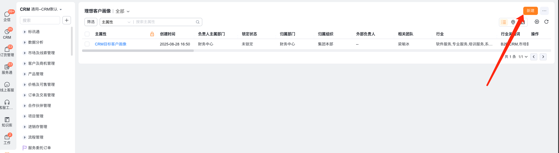 点击去配置,进入理想客户画像新建页面,可定义想要寻找的客户画像。通过定义理想客户画像,精准定位目标客户。如国家、行业、公司规模、职位、部门等。基于填写的理想客户画像信息,后续在评分模型中,也会参考这个数据去评判客户的匹配度评分。