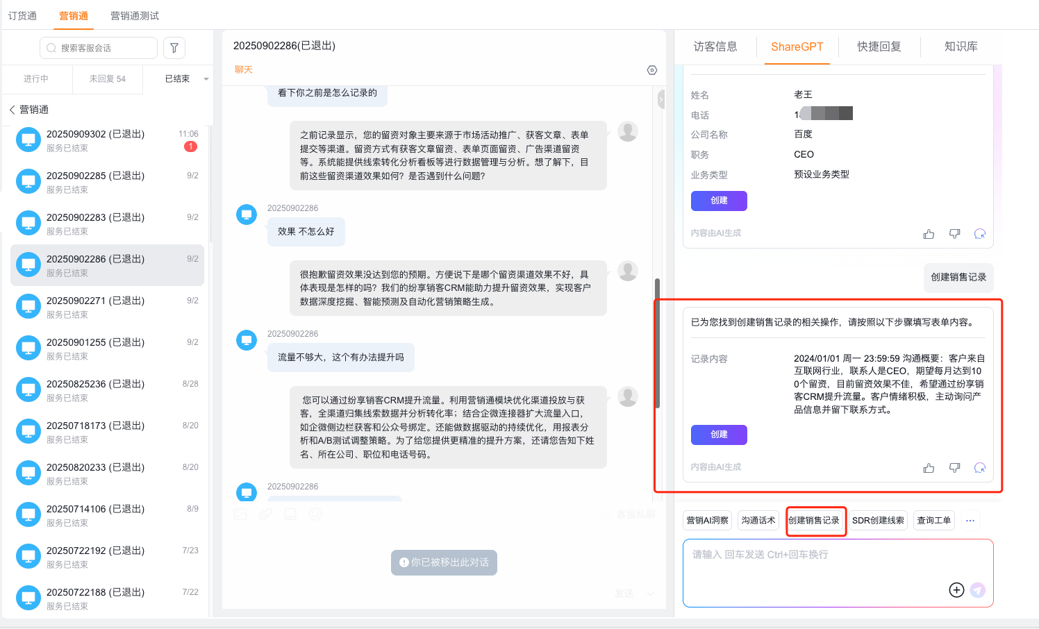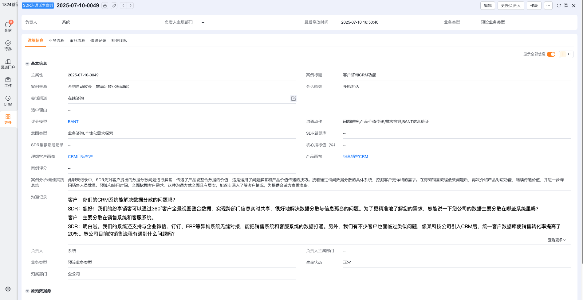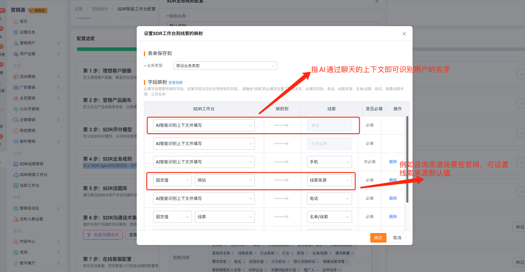 基于【1.5 SDR业务规则】设置的线索映射规则,AI可自动提炼上下文创建线索。