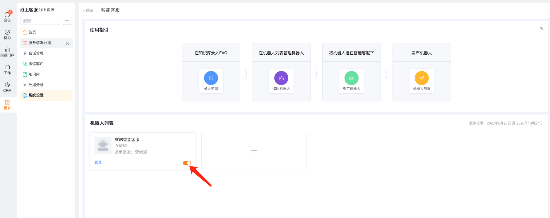 半自动模式:若期望由人工接待,则关闭智能客服开关。