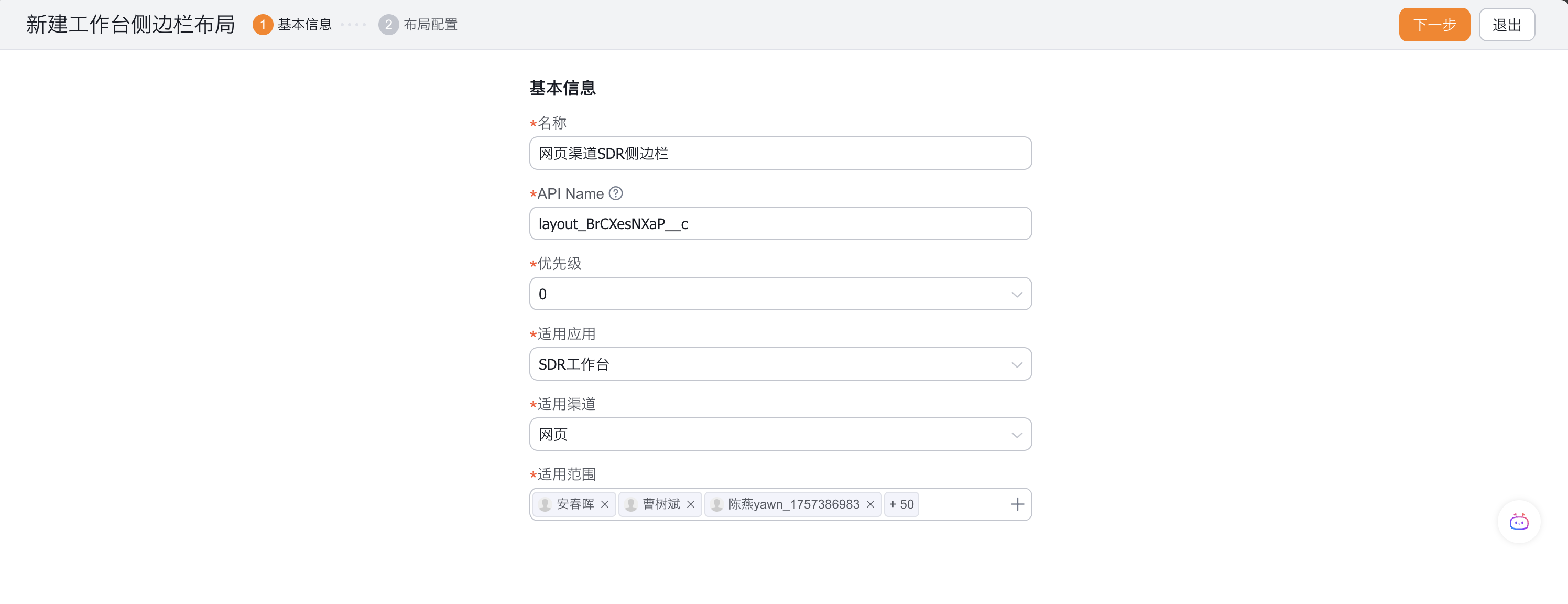 3、点击【新建布局】填写基本信息后点击【下一步】