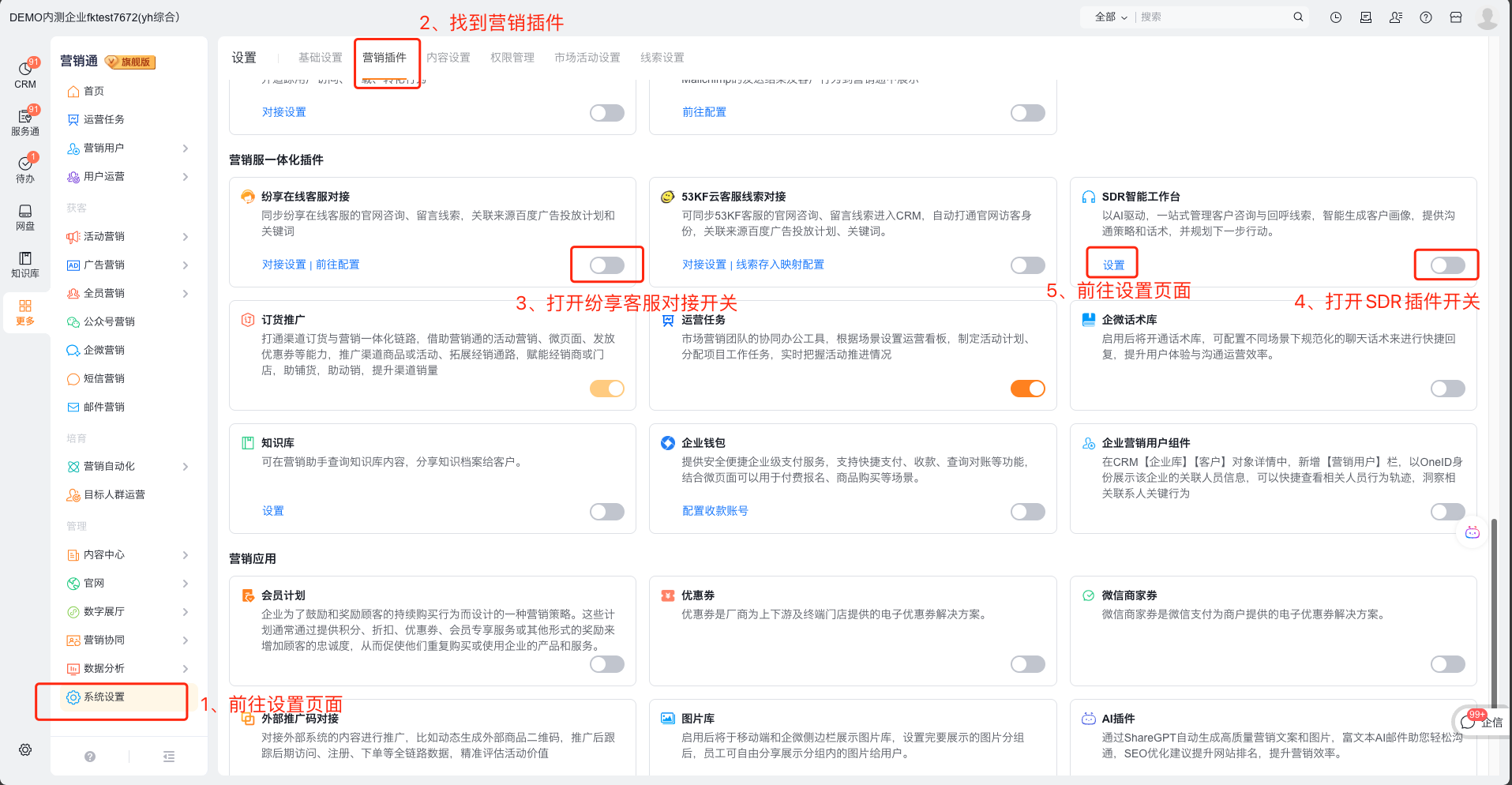 1、前往【营销通】插件中心打开相关插件,进入配置页面