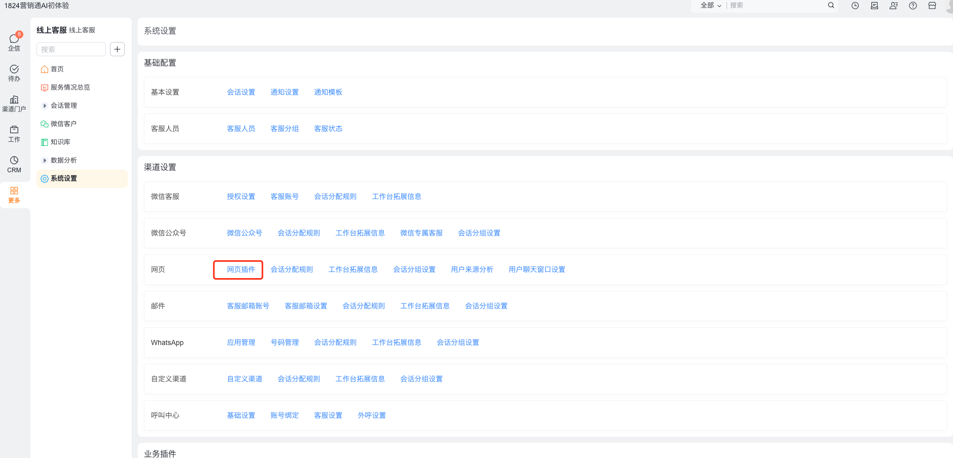 在IM咨询渠道中,需要先设置网页插件,并进行埋码,其中埋码说明见文档:https://help.fxiaoke.com/93d5/9188/6407/d184
