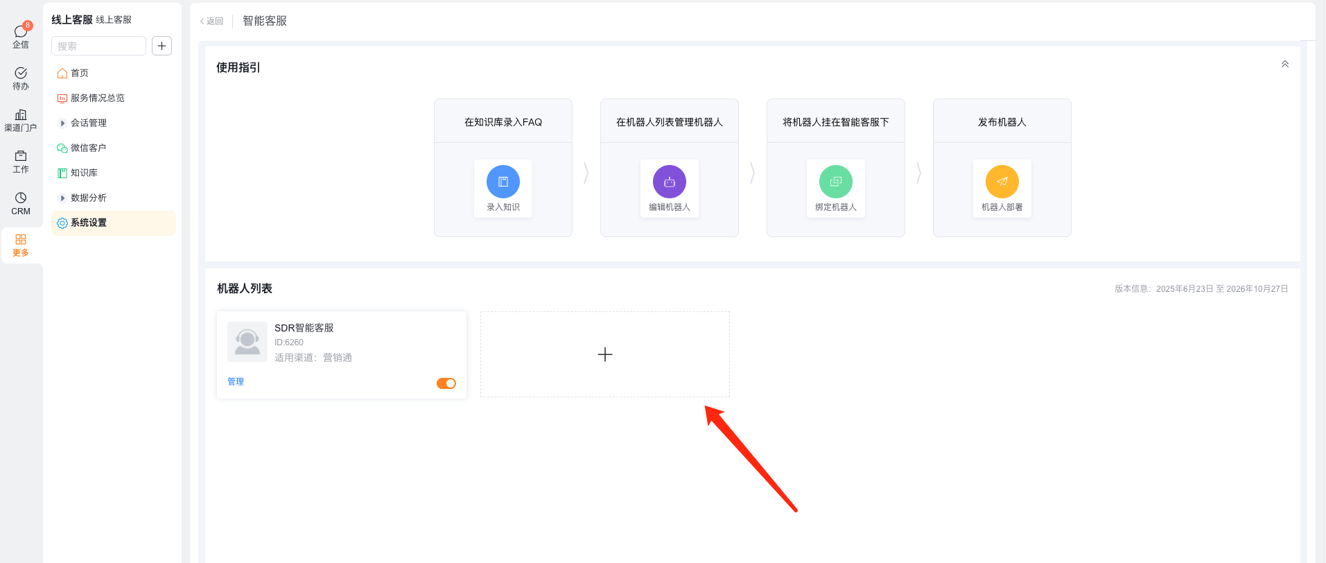 3.2 点击【机器人列表】的加号+新增机器人