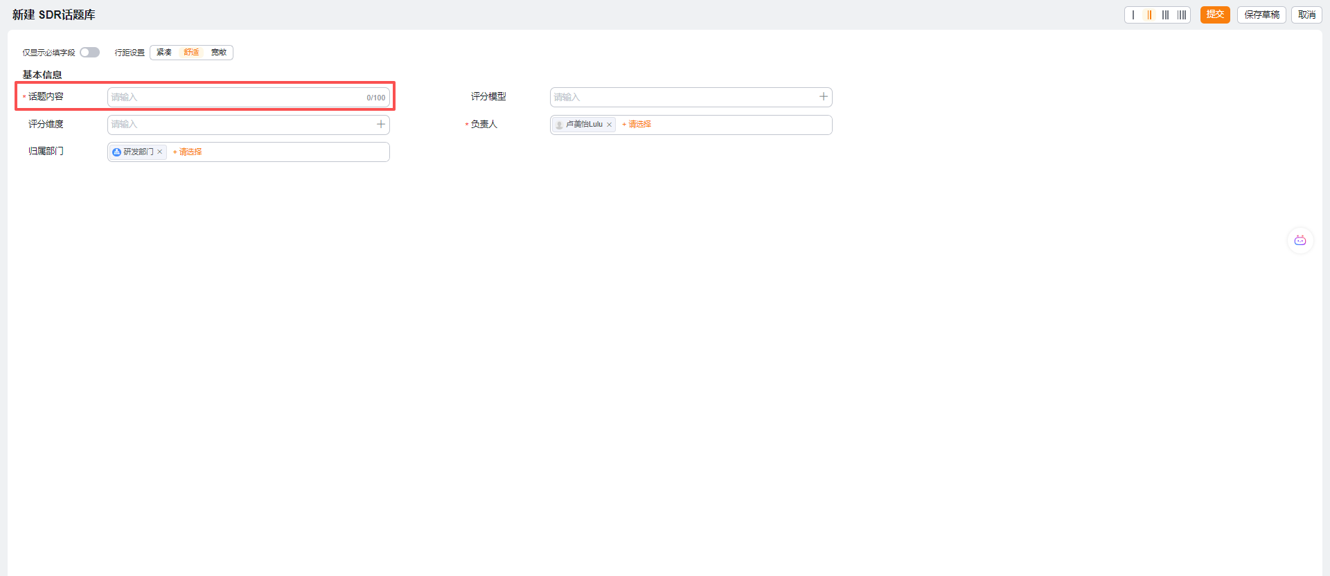 通过配置话题库指引AI提问的方向,如想要了解用户所在的行业,话题内容配置为“询问用户所在行业”,但话题库内容不宜超过三条。