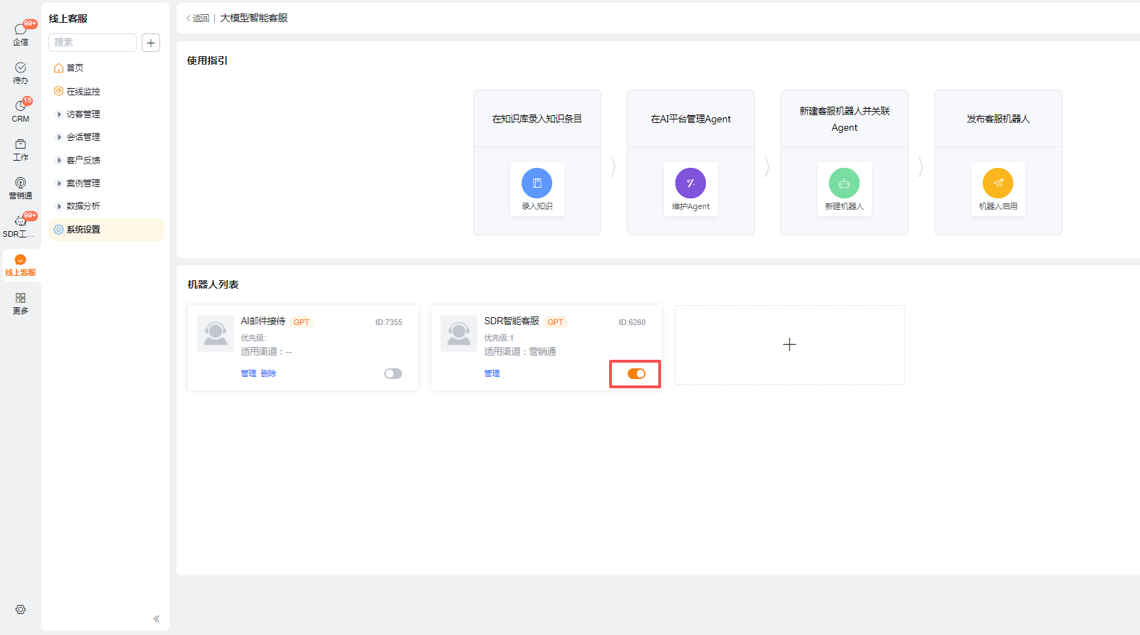 3.1 点击【线上客服-系统配置-大模型智能客服】进入配置页面