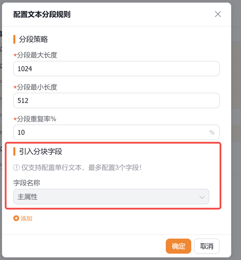标题字段和引入分块字段的内容会在添加到每个分段的chunk中(具体作用请参考下方的语义分段的策略介绍)