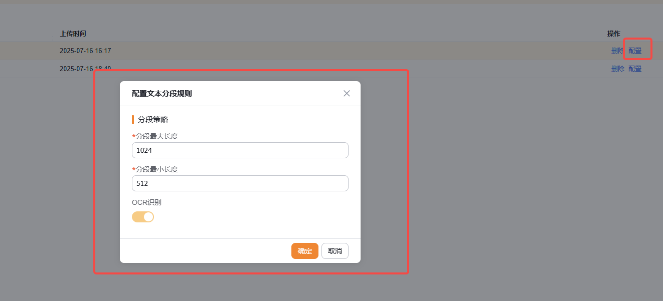 进入下一步后,上传需要创建语义索引的文件,并为文件设置分段配置