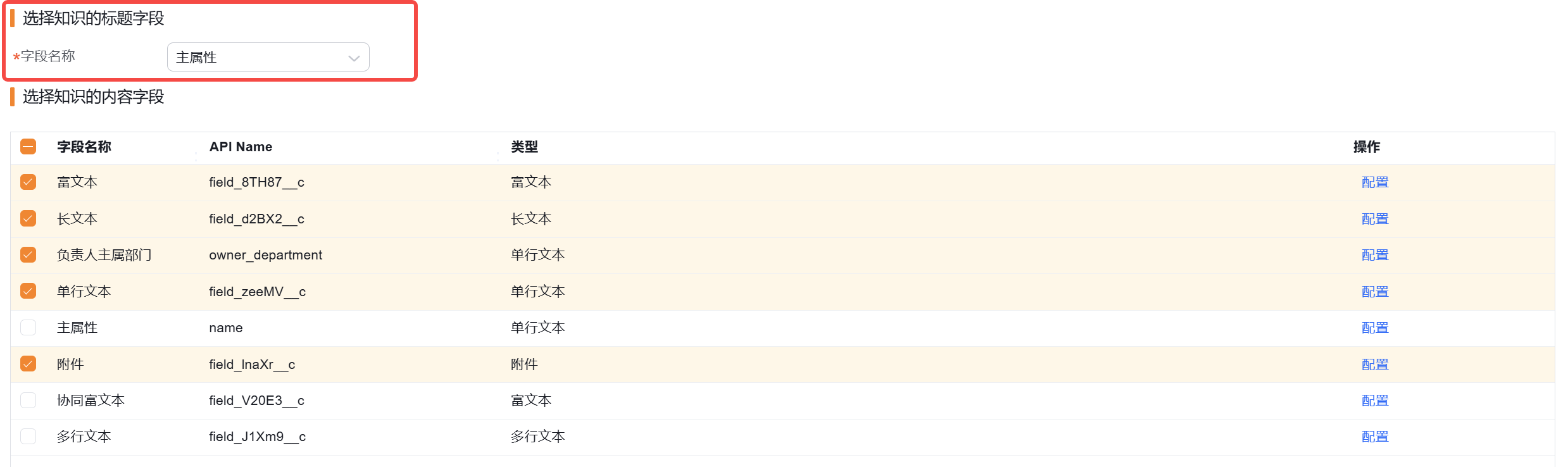 选择知识的标题字段