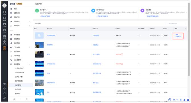 企微SCRM>消息群发/企微朋友圈,定时发送待发送的任务支持取消及内容更新。